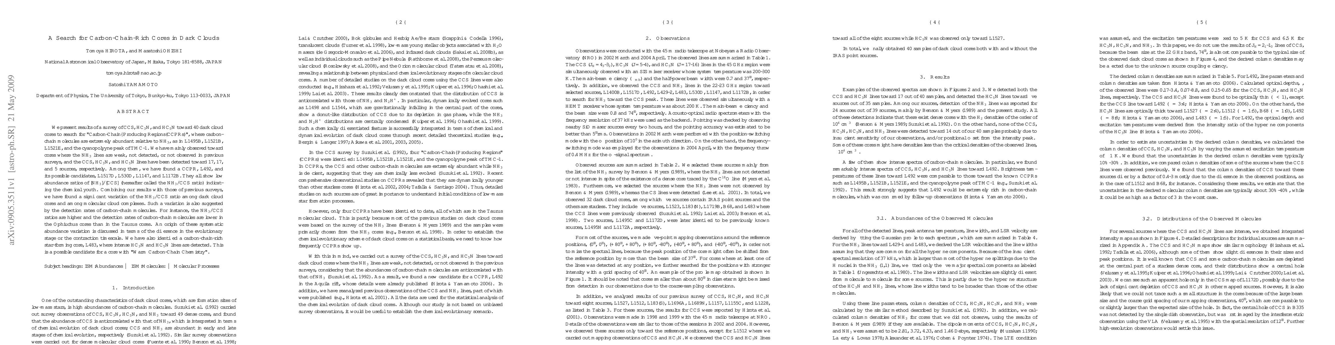 This study surveys carbon-chain molecules (CCS, HC$_{3}$N, HC$_{5}$N) in 40 dark cloud cores to identify regions with high carbon-chain abundance relative to NH$_{3}$, termed "Carbon-Chain-Producing Regions (CCPRs)." The survey finds significant variation in the NH$_{3}$/CCS ratio among different cloud cores, suggesting differences in evolutionary stages or contraction timescales.