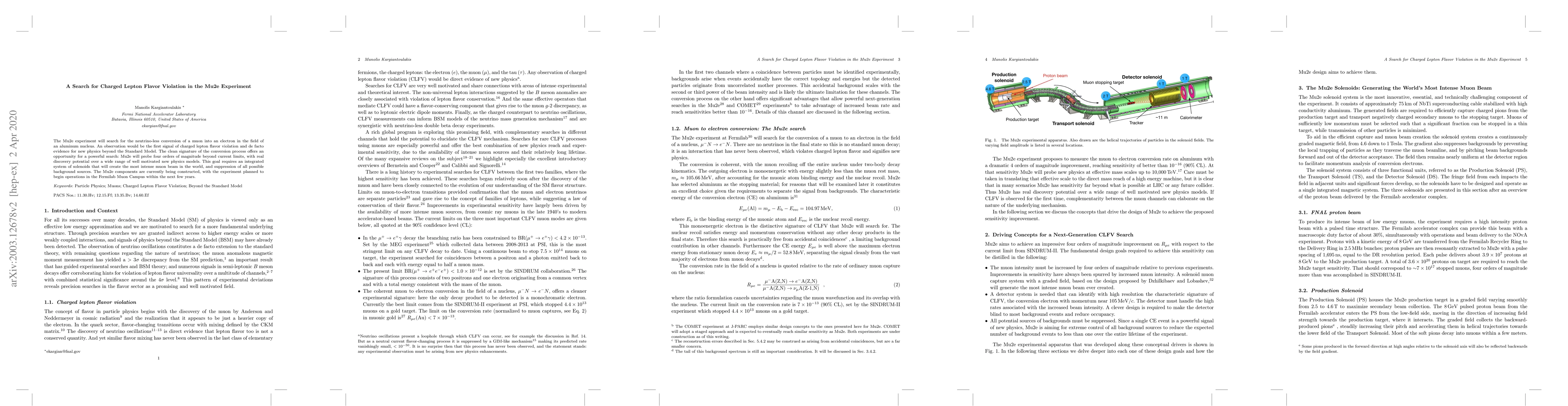 The Mu2e experiment aims to detect neutrino-less muon-to-electron conversion, a phenomenon indicating charged lepton flavor violation and potential new physics beyond the Standard Model. The experiment seeks to achieve sensitivity four orders of magnitude beyond current limits, requiring advanced technology and stringent background suppression.