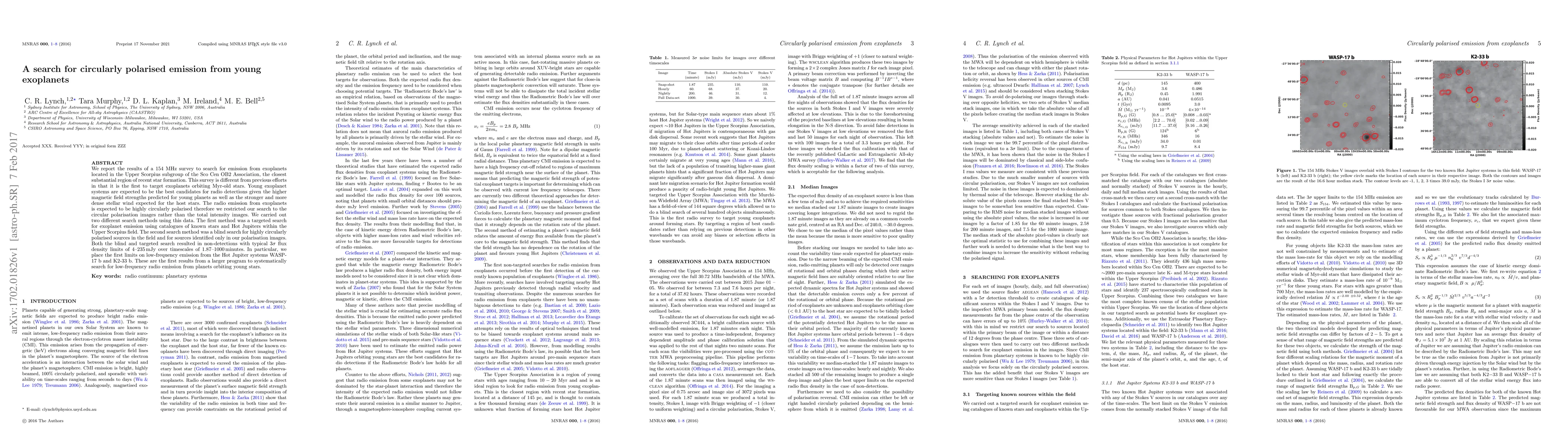 This study conducted a 154 MHz survey to detect circularly polarised radio emissions from young exoplanets in the Upper Scorpius subgroup, aiming to identify radio signals from planets with strong magnetic fields. Despite employing two search methods, no emissions were detected, setting new limits on low-frequency radio emissions from specific Hot Jupiter systems.