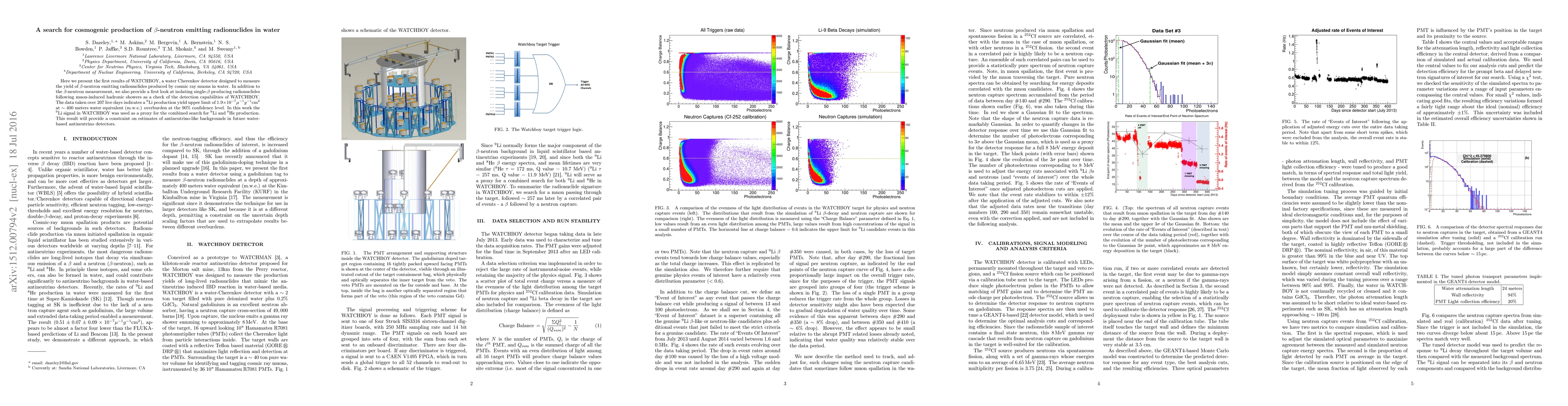 Here we present the first results of WATCHBOY, a water Cherenkov detector designed to measure the yield of $\beta$-neutron emitting radionuclides produced by cosmic ray muons in water. In addition to the $\beta$-neutron measurement, we also provide a first look at isolating single-$\beta$ producing radionuclides following muon-induced hadronic showers as a check of the detection capabilities of WATCHBOY. The data taken over $207$ live days indicates a $^{9}$Li production yield upper limit of $1.9\times10^{-7}\mu^{-1}g^{-1}\mathrm{cm}^2$ at $\sim400$ meters water equivalent (m.w.e.) overburden at the $90\%$ confidence level. In this work the $^{9}$Li signal in WATCHBOY was used as a proxy for the combined search for $^{9}$Li and $^{8}$He production. This result will provide a constraint on estimates of antineutrino-like backgrounds in future water-based antineutrino detectors.