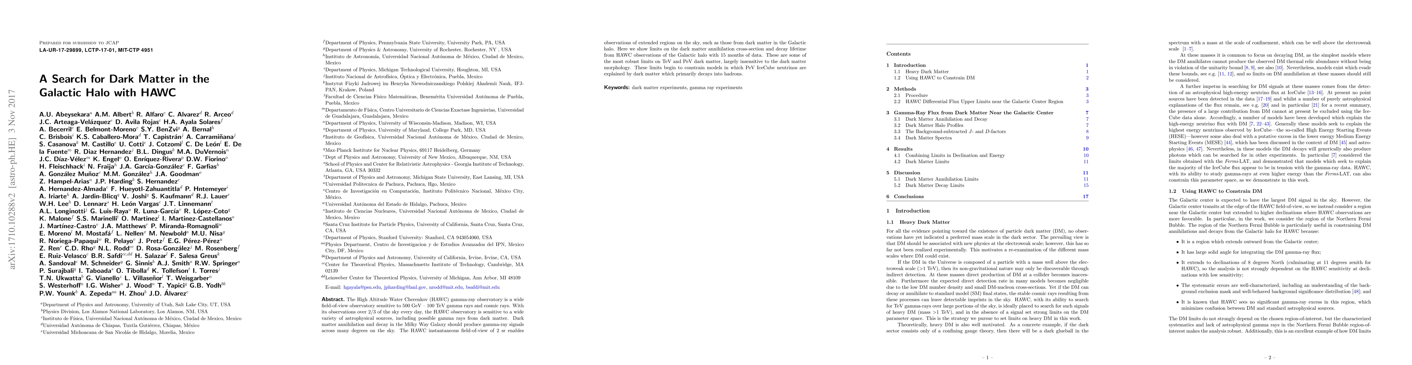 The High Altitude Water Cherenkov (HAWC) gamma-ray observatory is a wide field-of-view observatory sensitive to 500 GeV - 100 TeV gamma rays and cosmic rays. With its observations over 2/3 of the sky every day, the HAWC observatory is sensitive to a wide variety of astrophysical sources, including possible gamma rays from dark matter. Dark matter annihilation and decay in the Milky Way Galaxy should produce gamma-ray signals across many degrees on the sky. The HAWC instantaneous field-of-view of 2 sr enables observations of extended regions on the sky, such as those from dark matter in the Galactic halo. Here we show limits on the dark matter annihilation cross-section and decay lifetime from HAWC observations of the Galactic halo with 15 months of data. These are some of the most robust limits on TeV and PeV dark matter, largely insensitive to the dark matter morphology. These limits begin to constrain models in which PeV IceCube neutrinos are explained by dark matter which primarily decays into hadrons.