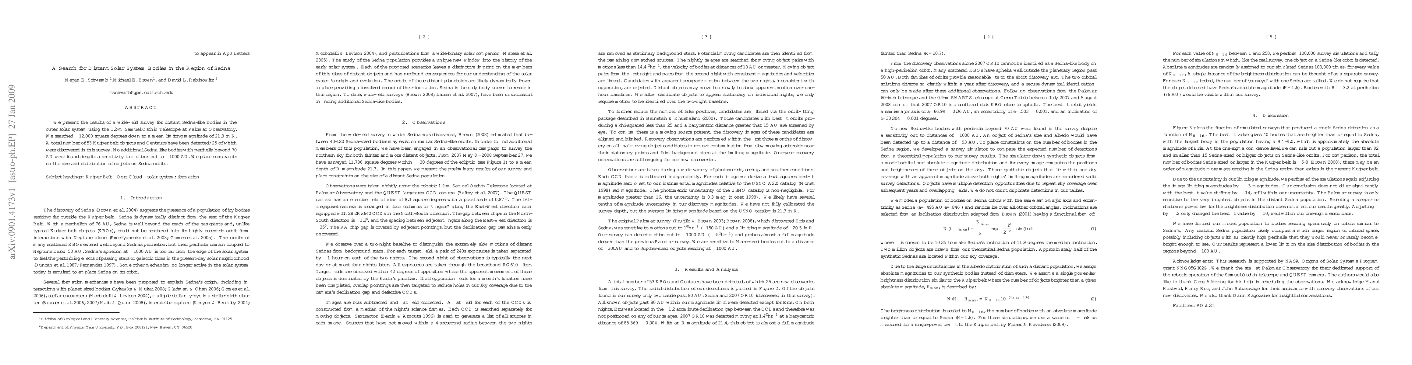 We present the results of a wide-field survey for distant Sedna-like bodies in the outer solar system using the 1.2-m Samuel Oschin Telescope at Palomar Observatory. We searched ~12,000 square degrees down to a mean limiting magnitude of 21.3 in R. A total number of 53 Kuiper belt objects and Centaurs have been detected; 25 of which were discovered in this survey. No additional Sedna-like bodies with perihelia beyond 70 AU were found despite a sensitivity to motions out to ~1000 AU. We place constraints on the size and distribution of objects on Sedna orbits.