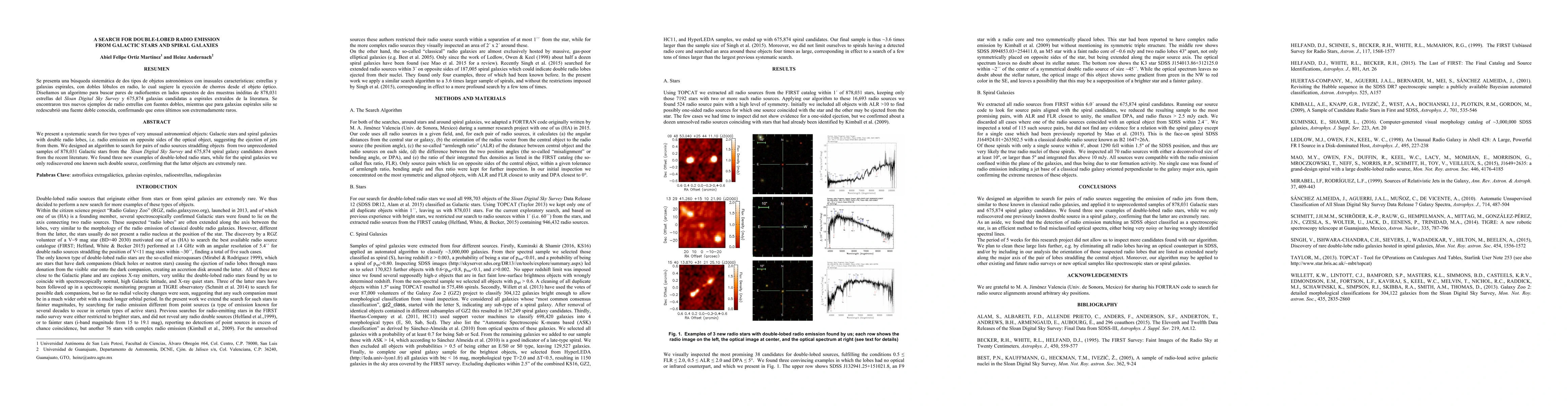 This research systematically searched for double-lobed radio emissions from Galactic stars and spiral galaxies, identifying three new double-lobed radio stars and confirming the rarity of such double-lobed spiral galaxies. The study utilized an algorithm to analyze unprecedented samples from the Sloan Digital Sky Survey and recent literature.