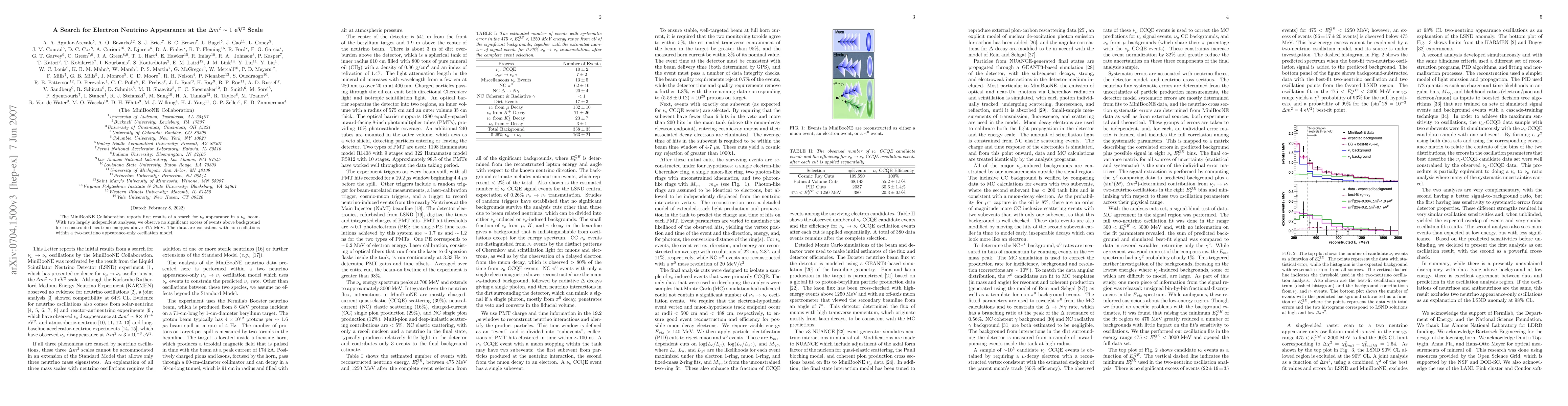 The MiniBooNE Collaboration presents initial findings on the search for electron neutrino appearance in a muon neutrino beam, observing no significant excess events above background for energies above 475 MeV, consistent with no oscillations in a two-neutrino model.