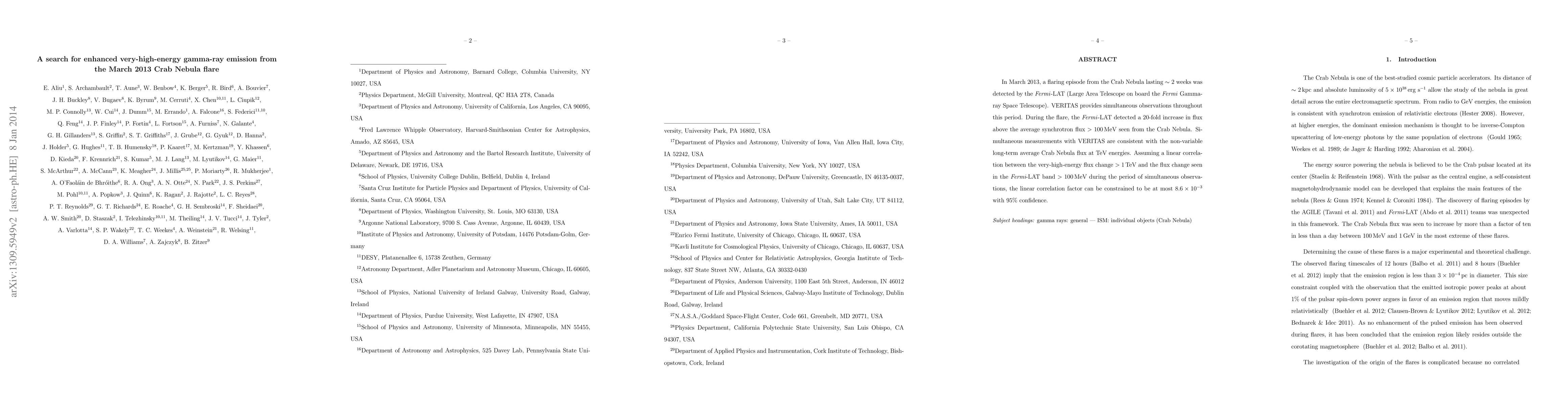 This paper investigates the March 2013 Crab Nebula flare, noting a 20-fold increase in gamma-ray flux above 100 MeV detected by Fermi-LAT. VERITAS observations show no significant TeV emission change, constraining the correlation factor between TeV and MeV flux changes to at most 8.6 * 10^-3 with 95% confidence.