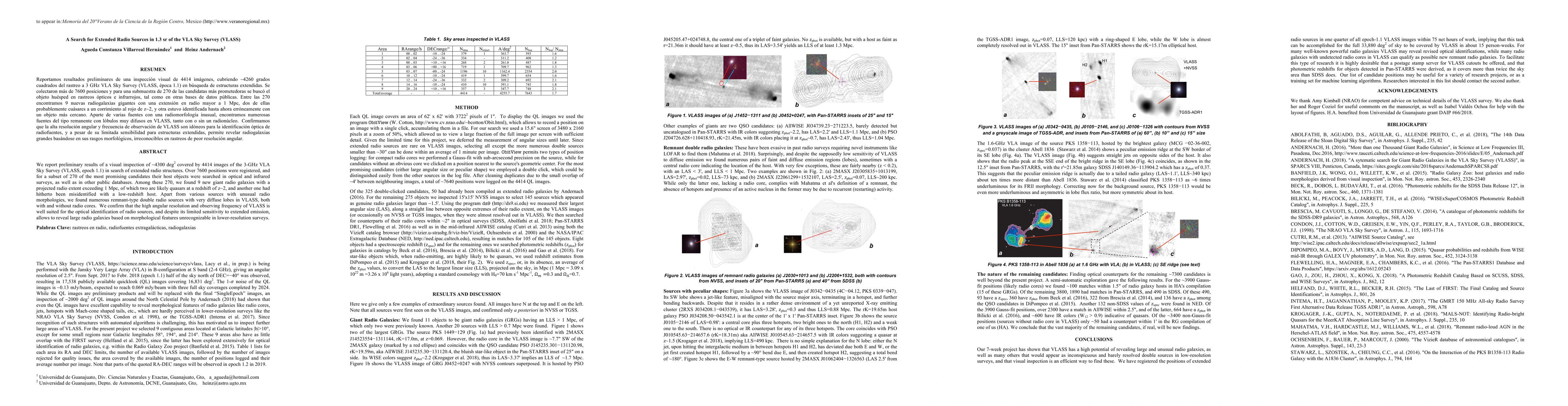 We report preliminary results of a visual inspection of ~4300 deg$^2$ covered by 4414 images of the 3-GHz VLA Sky Survey (VLASS, epoch 1.1) in search of extended radio structures. Over 7600 positions were registered, and for a subset of 270 of the most promising candidates their host objects were searched in optical and infrared surveys, as well as in other public databases. Among these 270, we found 9 new giant radio galaxies with a projected radio extent exceeding 1 Mpc, of which two are likely quasars at a redshift of z$\sim$2, and another one had hitherto been misidentified with a low-redshift host. Apart from various sources with unusual radio morphologies, we found numerous remnant-type double radio sources with very diffuse lobes in VLASS, both with and without radio cores. We confirm that the high angular resolution and observing frequency of VLASS is well suited for the optical identification of radio sources, and despite its limited sensitivity to extended emission, allows to reveal large radio galaxies based on morphological features unrecognizable in lower-resolution surveys.