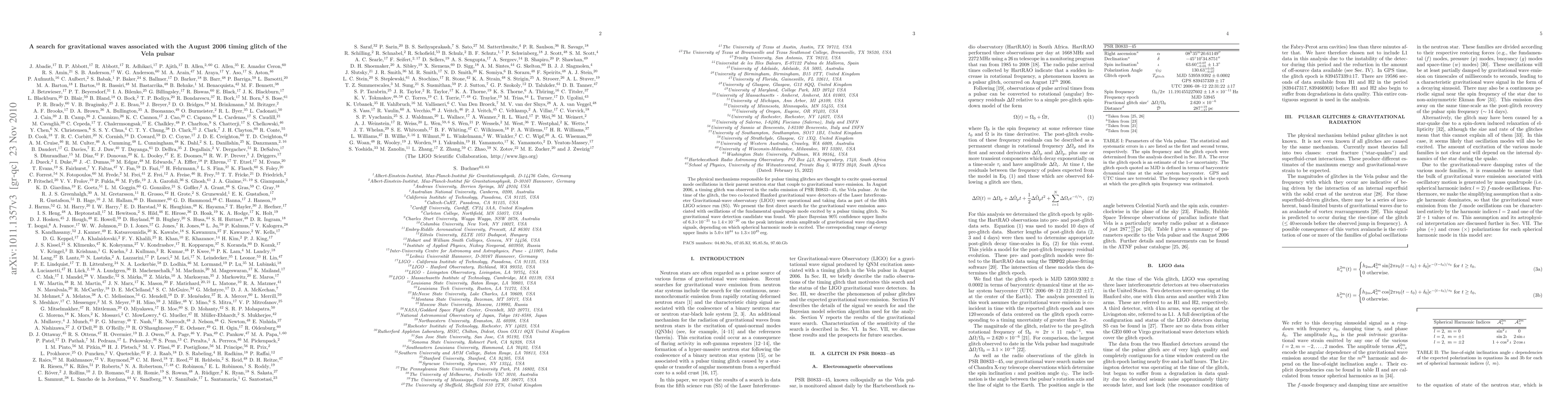 Researchers searched for gravitational waves associated with a 2006 pulsar timing glitch in the Vela pulsar and found no detection candidates, placing upper limits on possible strain amplitudes.