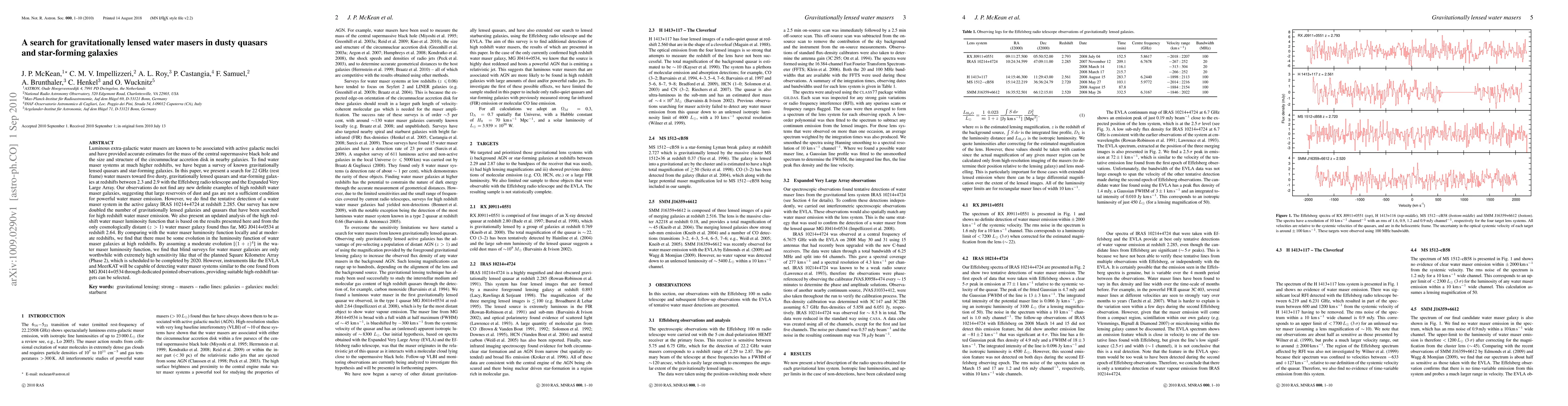 This paper reports a search for high-redshift water masers in five dusty, gravitationally lensed quasars and star-forming galaxies, finding no new definite examples but tentatively detecting a maser in IRAS 10214+4724. The study suggests that large dust and gas reservoirs alone do not guarantee powerful water maser emission.