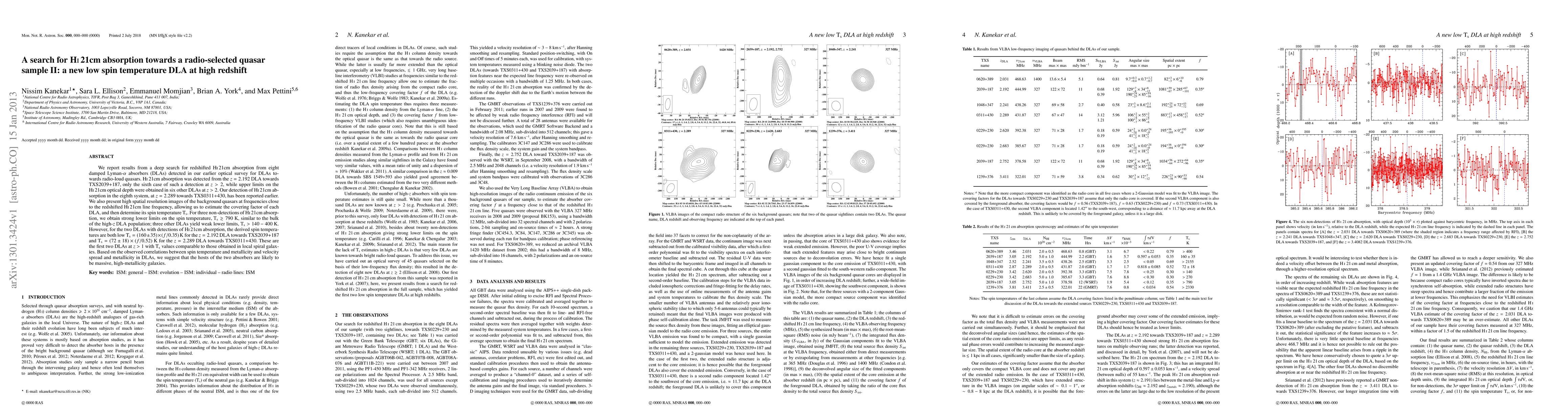 The research detected HI 21cm absorption in two high-redshift damped Lyman-$alpha$ absorbers (DLAs), revealing low spin temperatures similar to local spiral galaxies. It also provides strong lower limits on spin temperatures for non-detection cases, suggesting massive, high-metallicity galaxy hosts for DLAs with low spin temperatures.