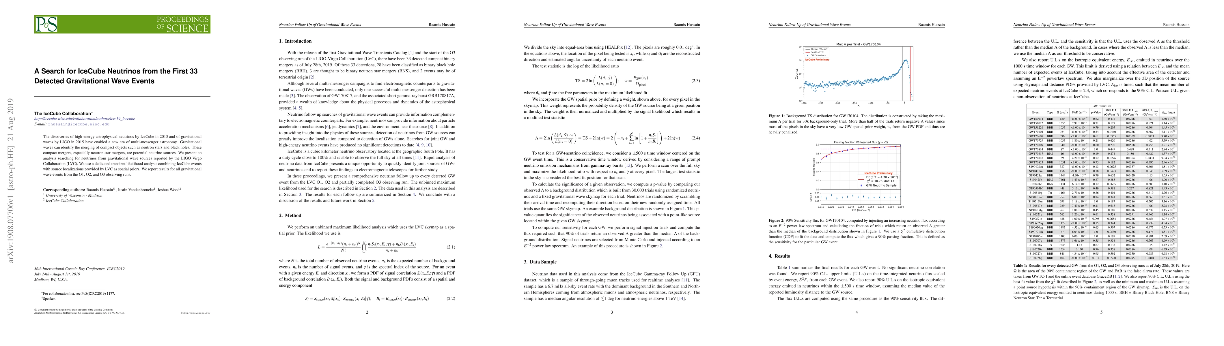This study investigates high-energy neutrinos from the first 33 gravitational wave events detected by LIGO and Virgo, using IceCube's neutrino data. The analysis employs a transient likelihood method to search for neutrino signals coincident with gravitational wave sources, aiming to identify potential neutrino sources from compact object mergers.