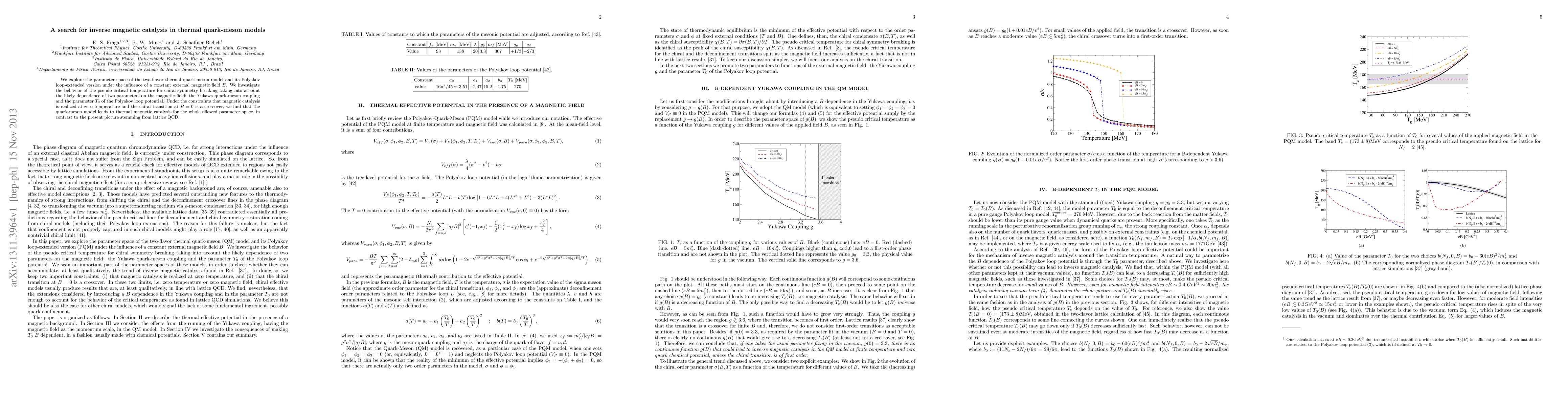 This research investigates the two-flavor thermal quark-meson model and its extended version under a magnetic field, finding that thermal magnetic catalysis occurs for all allowed parameters, contrary to lattice QCD results, while adhering to conditions of zero-temperature magnetic catalysis and a B=0 crossover chiral transition.