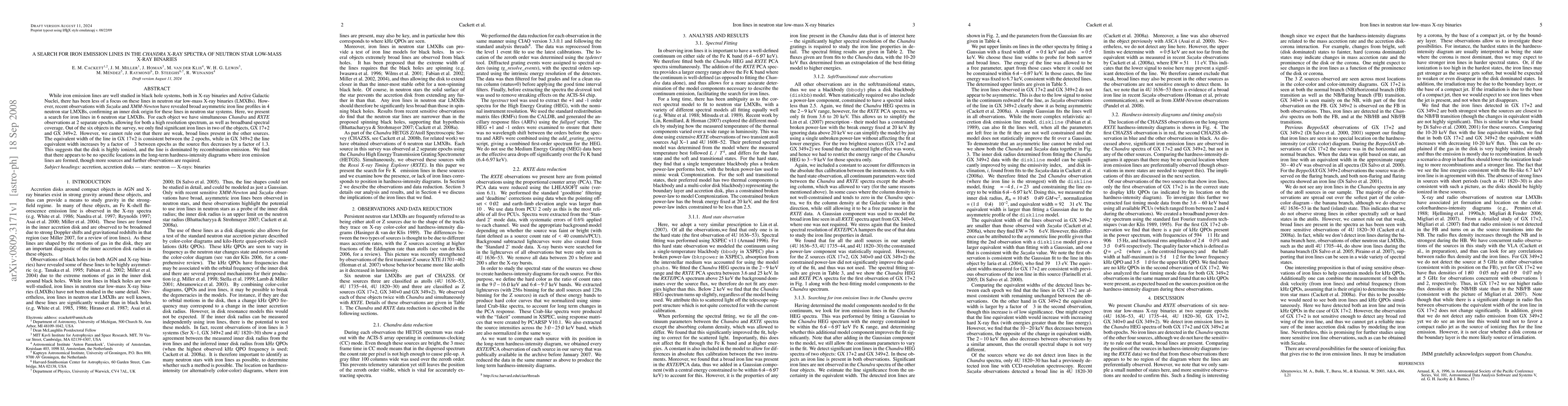 This study investigates iron emission lines in neutron star low-mass X-ray binaries using Chandra and RXTE data, finding significant lines in two objects, GX 17+2 and GX 349+2, with the latter showing an increase in line equivalent width as flux decreases, indicating highly ionized disk recombination.