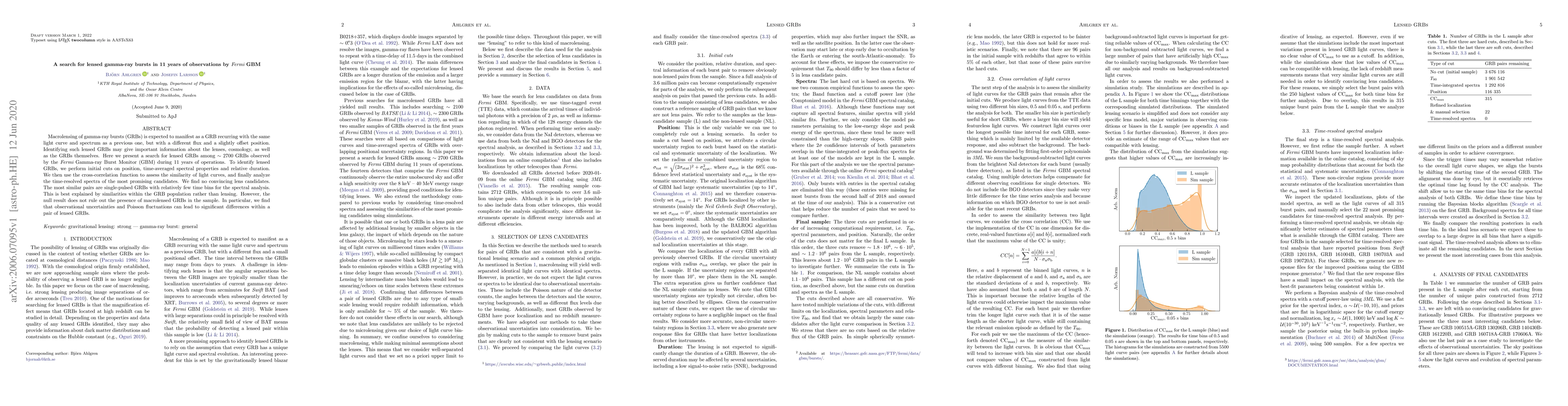 Macrolensing of gamma-ray bursts (GRBs) is expected to manifest as a GRB recurring with the same light curve and spectrum as a previous one, but with a different flux and a slightly offset position. Identifying such lensed GRBs may give important information about the lenses, cosmology, as well as the GRBs themselves. Here we present a search for lensed GRBs among $\sim 2700$ GRBs observed by the Fermi Gamma-ray Burst Monitor (GBM) during 11 years of operations. To identify lensed GRBs, we perform initial cuts on position, time-averaged spectral properties and relative duration. We then use the cross-correlation function to assess the similarity of light curves, and finally analyze the time-resolved spectra of the most promising candidates. We find no convincing lens candidates. The most similar pairs are single-pulsed GRBs with relatively few time bins for the spectral analysis. This is best explained by similarities within the GRB population rather than lensing. However, the null result does not rule out the presence of macrolensed GRBs in the sample. In particular, we find that observational uncertainties and Poisson fluctuations can lead to significant differences within a pair of lensed GRBs.