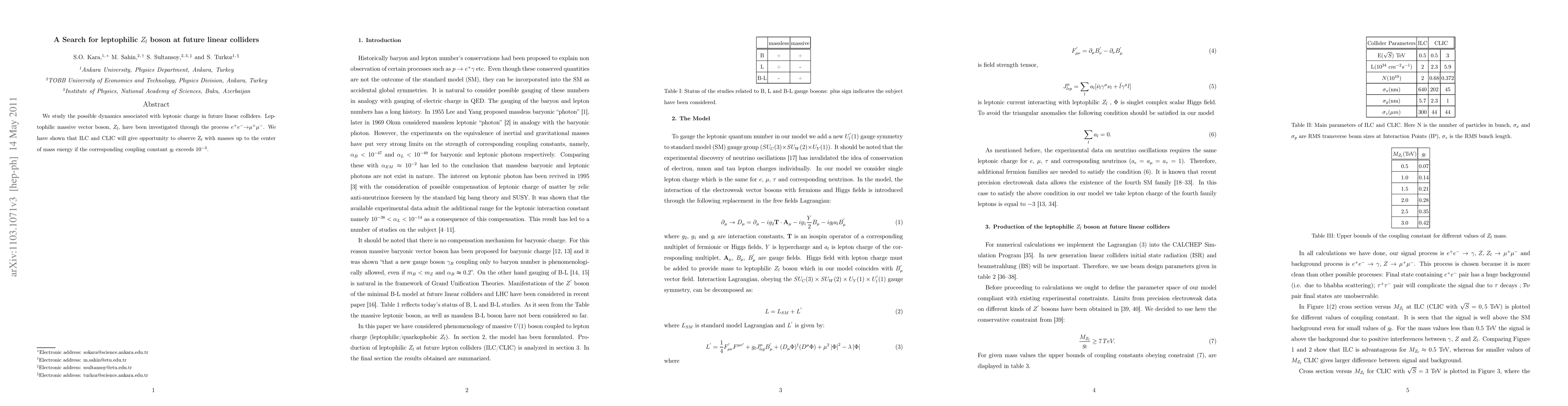 We study the possible dynamics associated with leptonic charge in future linear colliders. Leptophilic massive vector boson, Z_(l), have been investigated through the process e^(+)e^(-) -> mu^(+)mu^(-). We have shown that ILC and CLIC will give opportunity to observe Z_(l) with masses up to the center of mass energy if the corresponding coupling constant g_(l) exceeds 10^(-3).