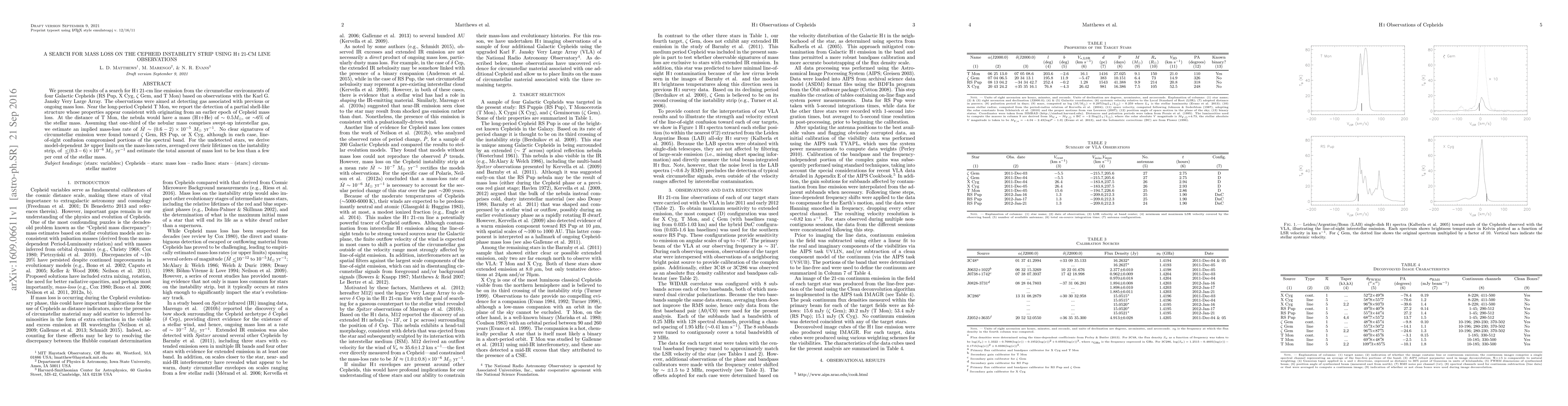 We present the results of a search for HI 21-cm line emission from the circumstellar environments of four Galactic Cepheids (RS Pup, X Cyg, $\zeta$ Gem, and T Mon) based on observations with the Karl G. Jansky Very Large Array. The observations were aimed at detecting gas associated with previous or ongoing mass loss. Near the long-period Cepheid T Mon, we report the detection of a partial shell-like structure whose properties appear consistent with originating from an earlier epoch of Cepheid mass loss. At the distance of T Mon, the nebula would have a mass (HI+He) of $\sim0.5M_{\odot}$, or $\sim$6\% of the stellar mass. Assuming that one-third of the nebular mass comprises swept-up interstellar gas, we estimate an implied mass-loss rate of ${\dot M}\sim (0.6-2)\times10^{-5} M_{\odot}$ yr$^{-1}$. No clear signatures of circumstellar emission were found toward $\zeta$ Gem, RS Pup, or X Cyg, although in each case, line-of-sight confusion compromised portions of the spectral band. For the undetected stars, we derive model-dependent $3\sigma$ upper limits on the mass-loss rates, averaged over their lifetimes on the instability strip, of $<(0.3-6)\times10^{-6} M_{\odot}$ yr$^{-1}$ and estimate the total amount of mass lost to be less than a few per cent of the stellar mass.