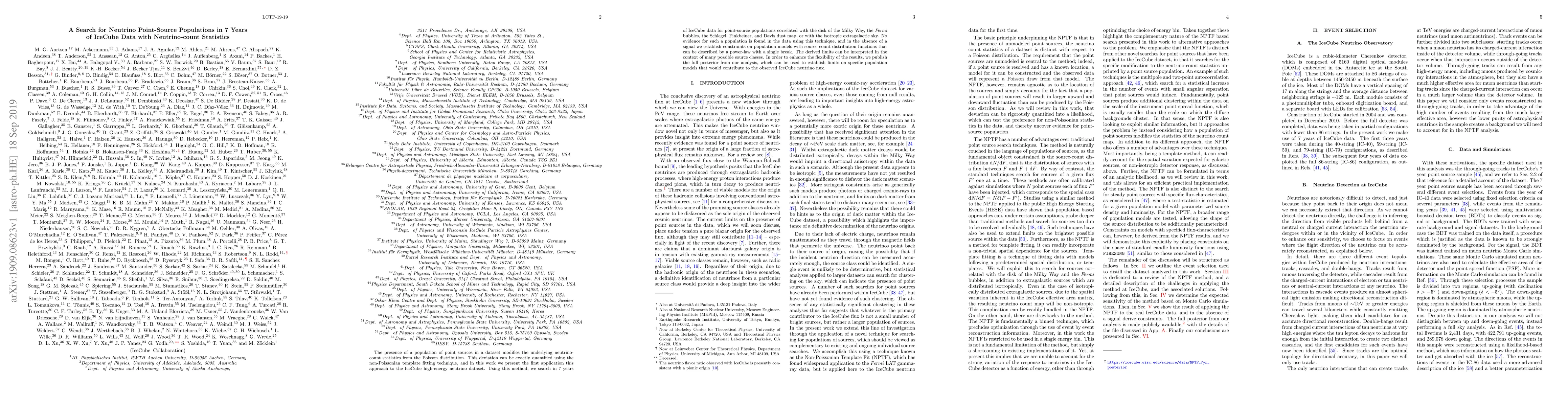 The presence of a population of point sources in a dataset modifies the underlying neutrino-count statistics from the Poisson distribution. This deviation can be exactly quantified using the non-Poissonian template fitting technique, and in this work we present the first application this approach to the IceCube high-energy neutrino dataset. Using this method, we search in 7 years of IceCube data for point-source populations correlated with the disk of the Milky Way, the Fermi bubbles, the Schlegel, Finkbeiner, and Davis dust map, or with the isotropic extragalactic sky. No evidence for such a population is found in the data using this technique, and in the absence of a signal we establish constraints on population models with source count distribution functions that can be described by a power-law with a single break. The derived limits can be interpreted in the context of many possible source classes. In order to enhance the flexibility of the results, we publish the full posterior from our analysis, which can be used to establish limits on specific population models that would contribute to the observed IceCube neutrino flux.