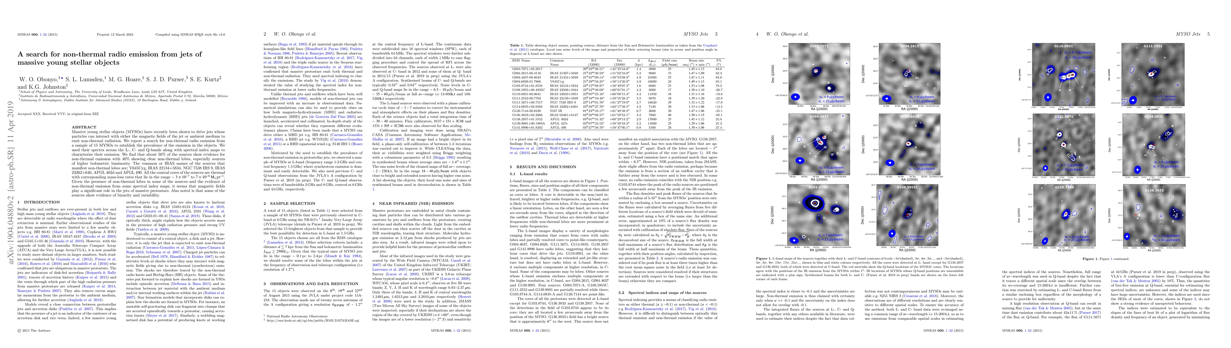 Massive young stellar objects (MYSOs) have recently been shown to drive jets whose particles can interact with either the magnetic fields of the jet or ambient medium to emit non-thermal radiation. We report a search for non-thermal radio emission from a sample of 15 MYSOs to establish the prevalence of the emission in the objects. We used their spectra across the L-, C- and Q-bands along with spectral index maps to characterise their emission. We find that about 50% of the sources show evidence for non-thermal emission with 40% showing clear non-thermal lobes, especially sources of higher bolometric luminosity. The common or IRAS names of the sources that manifest non-thermal lobes are; V645Cyg, IRAS 22134+5834, NGC 7538 IRS 9, IRAS 23262+640, AFGL 402d and AFGL 490. All the central cores of the sources are thermal with corresponding mass-loss rates that lie in the range 3X10^{-7} to 7X10^{-6} solar masses per year. Given the presence of non-thermal lobes in some of the sources and the evidence of non-thermal emission from some spectral index maps, it seems that magnetic fields play a significant role in the jets of massive protostars. Also noted is that some of the sources show evidence of binarity and variability.