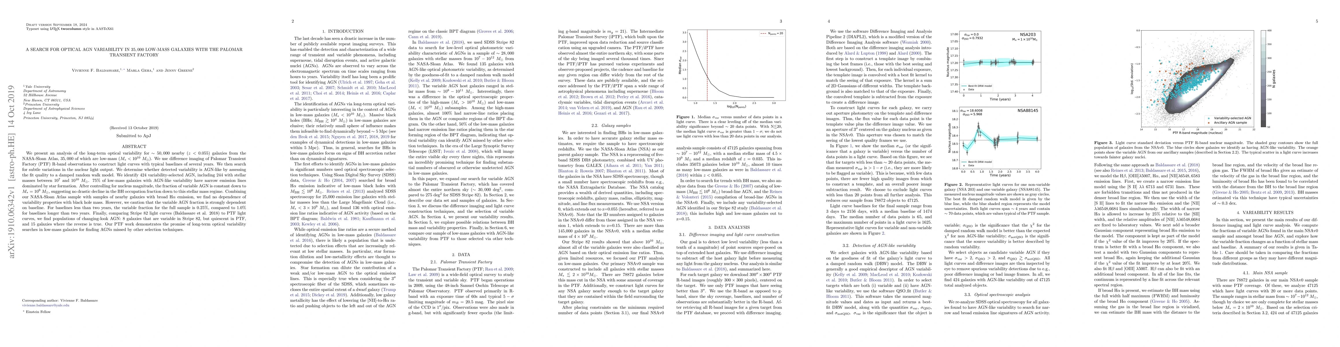 This study analyzes long-term optical variability in 35,000 low-mass galaxies using Palomar Transient Factory data, identifying 424 variability-selected AGNs, including many with stellar masses below $10^{10}~M_{\odot}$. The research highlights the potential of variability searches in low-mass galaxies to uncover AGNs, noting a significant dependence on observation baseline length.