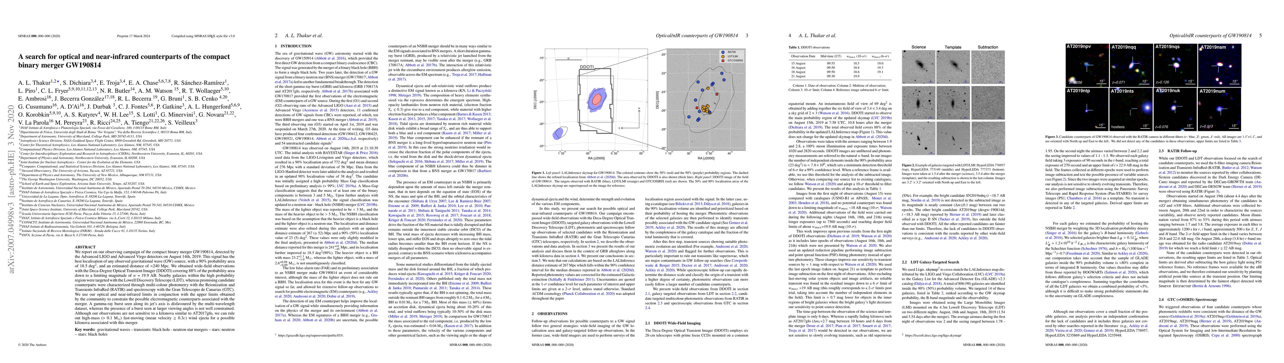 We report on our observing campaign of the compact binary merger GW190814, detected by the Advanced LIGO and Advanced Virgo detectors on August 14th, 2019. This signal has the best localisation of any observed gravitational wave (GW) source, with a 90% probability area of 18.5 deg$^2$, and an estimated distance of ~ 240 Mpc. We obtained wide-field observations with the Deca-Degree Optical Transient Imager (DDOTI) covering 88% of the probability area down to a limiting magnitude of $w$ = 19.9 AB. Nearby galaxies within the high probability region were targeted with the Lowell Discovery Telescope (LDT), whereas promising candidate counterparts were characterized through multi-colour photometry with the Reionization and Transients InfraRed (RATIR) and spectroscopy with the Gran Telescopio de Canarias (GTC). We use our optical and near-infrared limits in conjunction with the upper limits obtained by the community to constrain the possible electromagnetic counterparts associated with the merger. A gamma-ray burst seen along its jet's axis is disfavoured by the multi-wavelength dataset, whereas the presence of a burst seen at larger viewing angles is not well constrained. Although our observations are not sensitive to a kilonova similar to AT2017gfo, we can rule out high-mass (> 0.1 M$_{\odot}$) fast-moving (mean velocity >= 0.3c) wind ejecta for a possible kilonova associated with this merger.