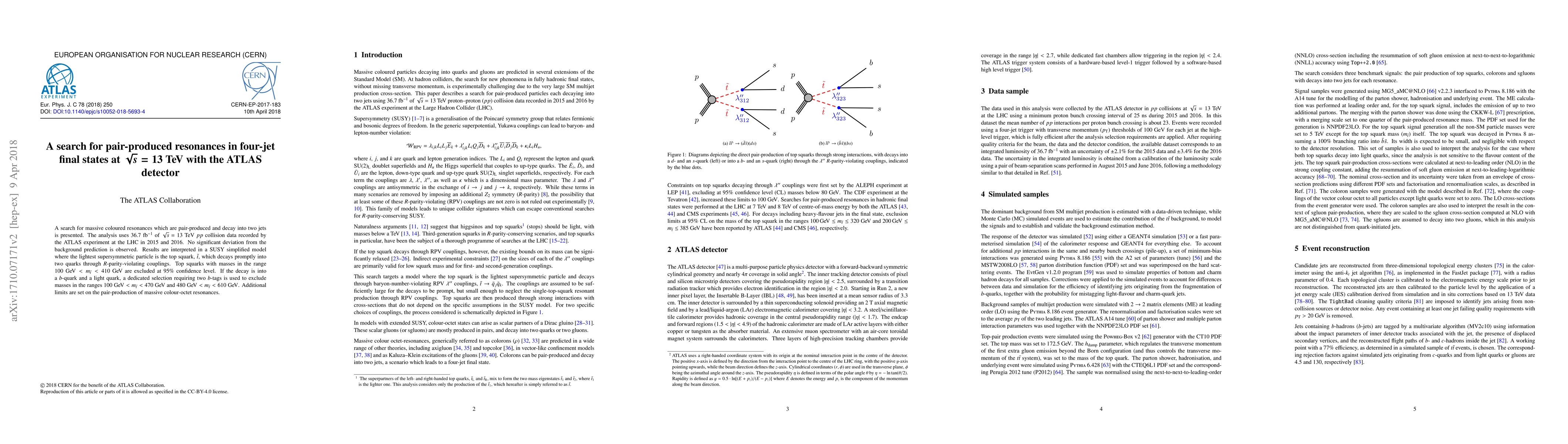 A search for massive coloured resonances which are pair-produced and decay into two jets is presented. The analysis uses 36.7 fb$^{-1}$ of $\sqrt{s}=$ 13 TeV pp collision data recorded by the ATLAS experiment at the LHC in 2015 and 2016. No significant deviation from the background prediction is observed. Results are interpreted in a SUSY simplified model where the lightest supersymmetric particle is the top squark, $\tilde{t}$, which decays promptly into two quarks through $R$-parity-violating couplings. Top squarks with masses in the range 100 GeV < $m_{\tilde{t}}$ < 410 GeV are excluded at 95% confidence level. If the decay is into a $b$-quark and a light quark, a dedicated selection requiring two $b$-tags is used to exclude masses in the ranges 100 GeV < $m_{\tilde{t}}$ < 470 GeV and 480 GeV < $m_{\tilde{t}}$ < 610 GeV. Additional limits are set on the pair-production of massive colour-octet resonances.