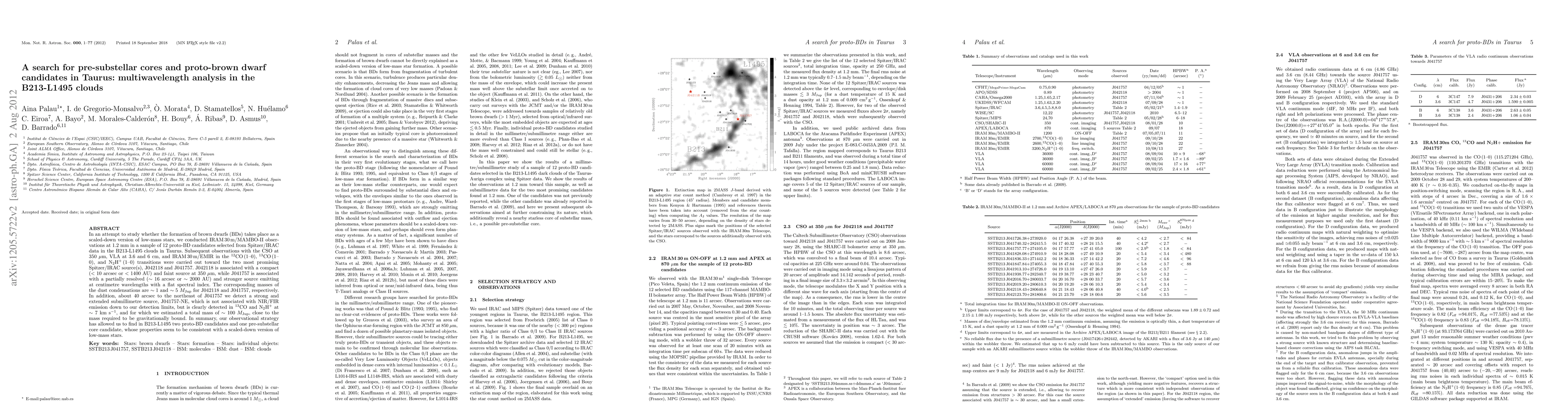 In an attempt to study whether the formation of brown dwarfs (BDs) takes place as a scaled-down version of low-mass stars, we conducted IRAM30m/MAMBO-II observations at 1.2 mm in a sample of 12 proto-BD candidates selected from Spitzer/IRAC data in the B213-L1495 clouds in Taurus. Subsequent observations with the CSO at 350 micron, VLA at 3.6 and 6 cm, and IRAM30m/EMIR in the 12CO(1-0), 13CO(1-0), and N2H+(1-0) transitions were carried out toward the two most promising Spitzer/IRAC source(s), J042118 and J041757. J042118 is associated with a compact (<10 arcsec or <1400 AU) and faint source at 350 micron, while J041757 is associated with a partially resolved (~16 arcsec or ~2000 AU) and stronger source emitting at centimetre wavelengths with a flat spectral index. The corresponding masses of the dust condensations are ~1 and ~5 Mjup for J042118 and J041757, respectively. In addition, about 40 arcsec to the northeast of J041757 we detect a strong and extended submillimetre source, J041757-NE, which is not associated with NIR/FIR emission down to our detection limits, but is clearly detected in 13CO and N2H+ at ~7 km/s, and for which we estimated a total mass of ~100 Mjup, close to the mass required to be gravitationally bound. In summary, our observational strategy has allowed us to find in B213-L1495 two proto-BD candidates and one pre-substellar core candidate, whose properties seem to be consistent with a scaled-down version of low-mass stars.
