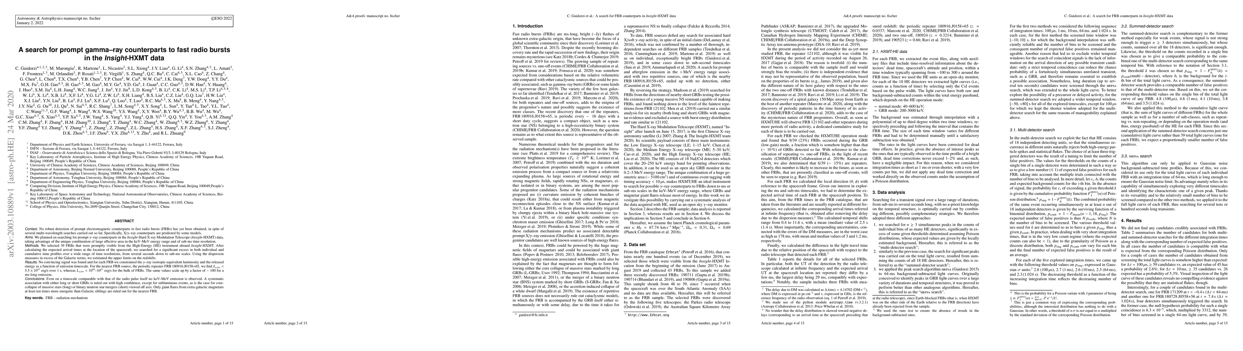No robust detection of prompt electromagnetic counterparts to fast radio bursts (FRBs) has yet been obtained, in spite of several multi-wavelength searches carried out so far. Specifically, X/gamma-ray counterparts are predicted by some models. We planned on searching for prompt gamma-ray counterparts in the Insight-Hard X-ray Modulation Telescope (Insight-HXMT) data, taking advantage of the unique combination of large effective area in the keV-MeV energy range and of sub-ms time resolution. We selected 39 FRBs that were promptly visible from the High-Energy (HE) instrument aboard Insight-HXMT. After calculating the expected arrival times at the location of the spacecraft, we searched for a significant excess in both individual and cumulative time profiles over a wide range of time resolutions, from several seconds down to sub-ms scales. Using the dispersion measures in excess of the Galactic terms, we estimated the upper limits on the redshifts. No convincing signal was found and for each FRB we constrained the gamma-ray isotropic-equivalent luminosity and the released energy as a function of emission timescale. For the nearest FRB source, the periodic repeater FRB180916.J0158+65, we find $L_{\gamma,iso}<5.5\times 10^{47}$ erg/s over 1 s, whereas $L_{\gamma,iso}<10^{49}-10^{51}$ erg/s for the bulk of FRBs. The same values scale up by a factor of ~100 for a ms-long emission. Even on a timescale comparable with that of the radio pulse itself no keV-MeV emission is observed. A systematic association with either long or short GRBs is ruled out with high confidence, except for subluminous events, as is the case for core-collapse of massive stars (long) or binary neutron star mergers (short) viewed off axis. Only giant flares from extra-galactic magnetars at least ten times more energetic than Galactic siblings are ruled out for the nearest FRB.