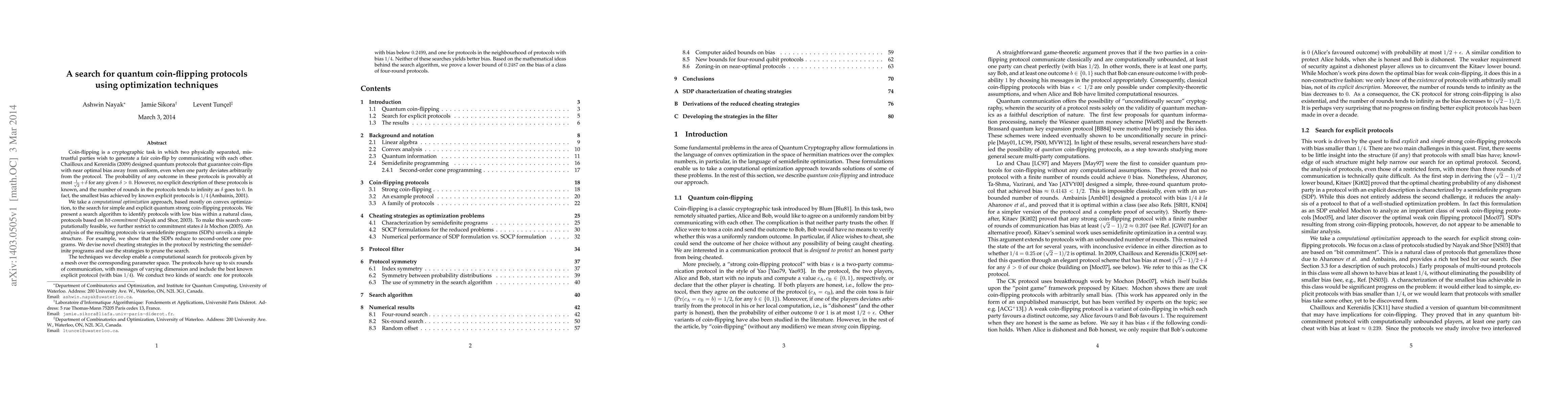 Researchers develop a new method to find simple quantum coin-flipping protocols with low bias using optimization techniques, confirming the best-known explicit protocol's 1/4 bias limit.