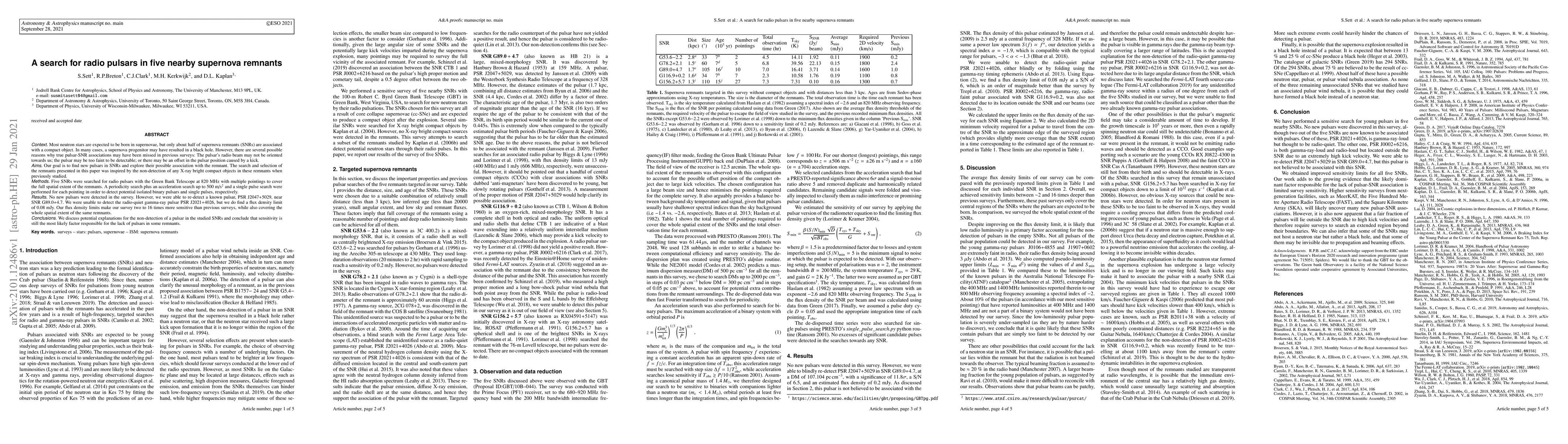 Researchers searched for radio pulsars in five nearby supernova remnants using a more sensitive telescope, but found no new detections, highlighting the challenge of identifying pulsars in some remnants.