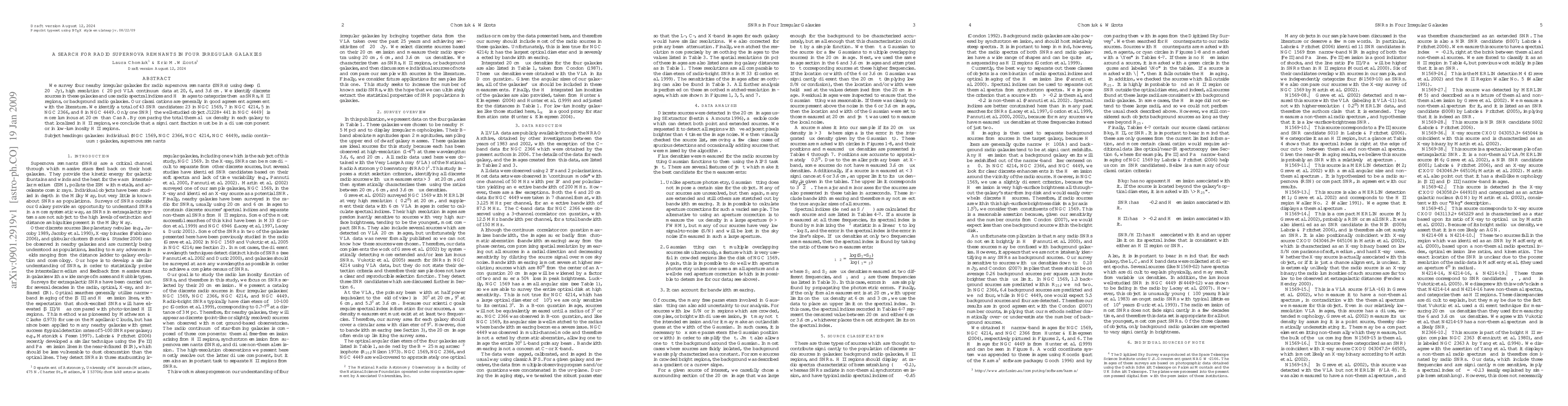 This study identifies 43 radio supernova remnants (SNRs) in four nearby irregular galaxies using deep VLA data, finding that only one SNR is exceptionally luminous. The research concludes that much of the thermal flux density in these galaxies is likely diffuse or in low-luminosity H II regions.
