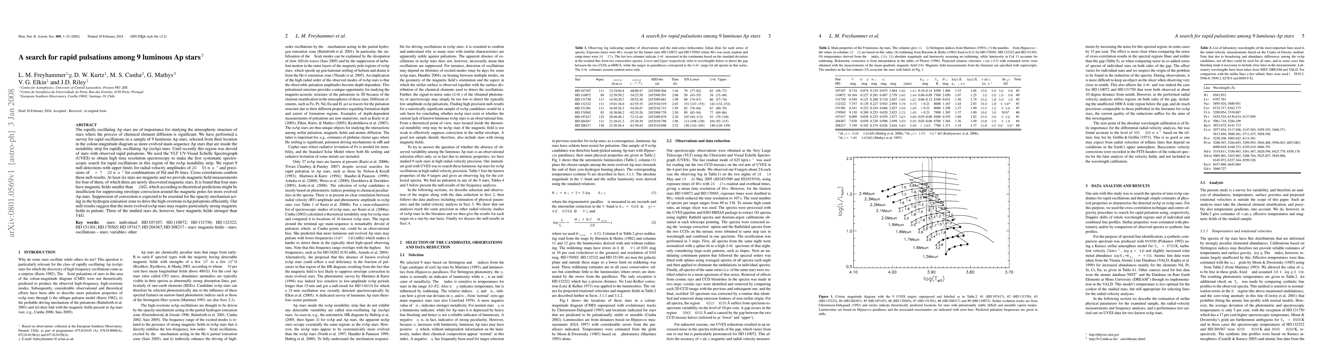 A survey of 9 luminous Ap stars found no evidence of rapid pulsations using high-time resolution spectroscopy, suggesting that more evolved Ap stars may require strong magnetic fields to pulsate.
