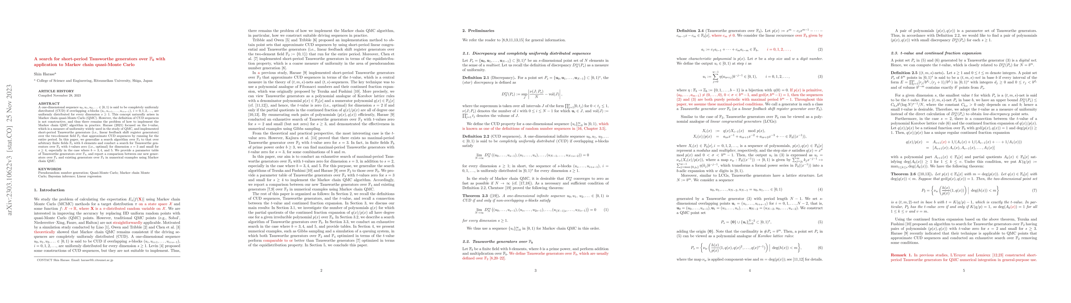 This paper generalizes a search algorithm for short-period Tausworthe generators over finite fields $\mathbb{F}_b$ to improve Markov chain quasi-Monte Carlo (QMC) methods. It identifies optimal Tausworthe generators with zero $t$-values for $s=3$ and near-optimal for higher dimensions, particularly for fields $\mathbb{F}_3$, $\mathbb{F}_4$, and $\mathbb{F}_5$.