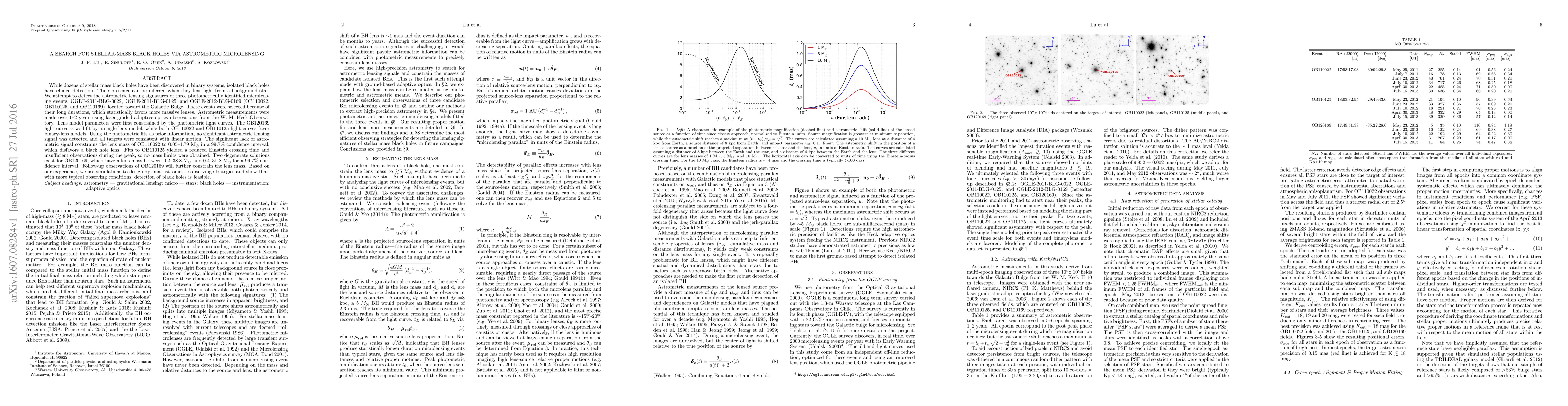 This research investigates the potential detection of stellar-mass black holes via astrometric microlensing of three long-duration microlensing events, but finds no significant astrometric signal. The study concludes that while black holes remain a possibility, current observations do not support their presence in these events.