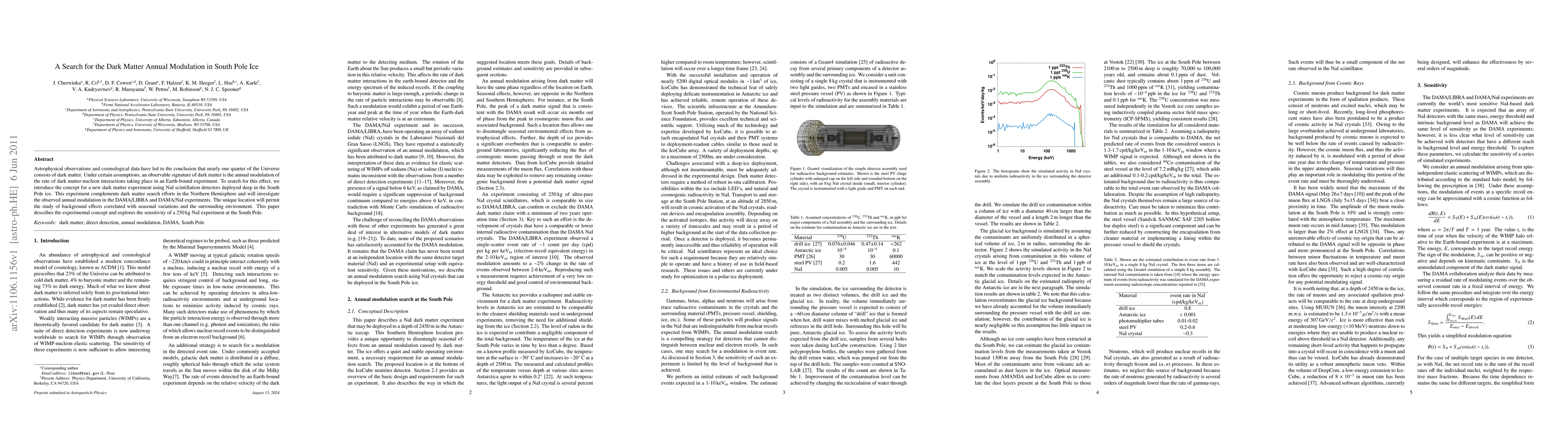 Astrophysical observations and cosmological data have led to the conclusion that nearly one quarter of the Universe consists of dark matter. Under certain assumptions, an observable signature of dark matter is the annual modulation of the rate of dark matter-nucleon interactions taking place in an Earth-bound experiment. To search for this effect, we introduce the concept for a new dark matter experiment using NaI scintillation detectors deployed deep in the South Pole ice. This experiment complements dark matter search efforts in the Northern Hemisphere and will investigate the observed annual modulation in the DAMA/LIBRA and DAMA/NaI experiments. The unique location will permit the study of background effects correlated with seasonal variations and the surrounding environment. This paper describes the experimental concept and explores the sensitivity of a 250 kg NaI experiment at the South Pole.