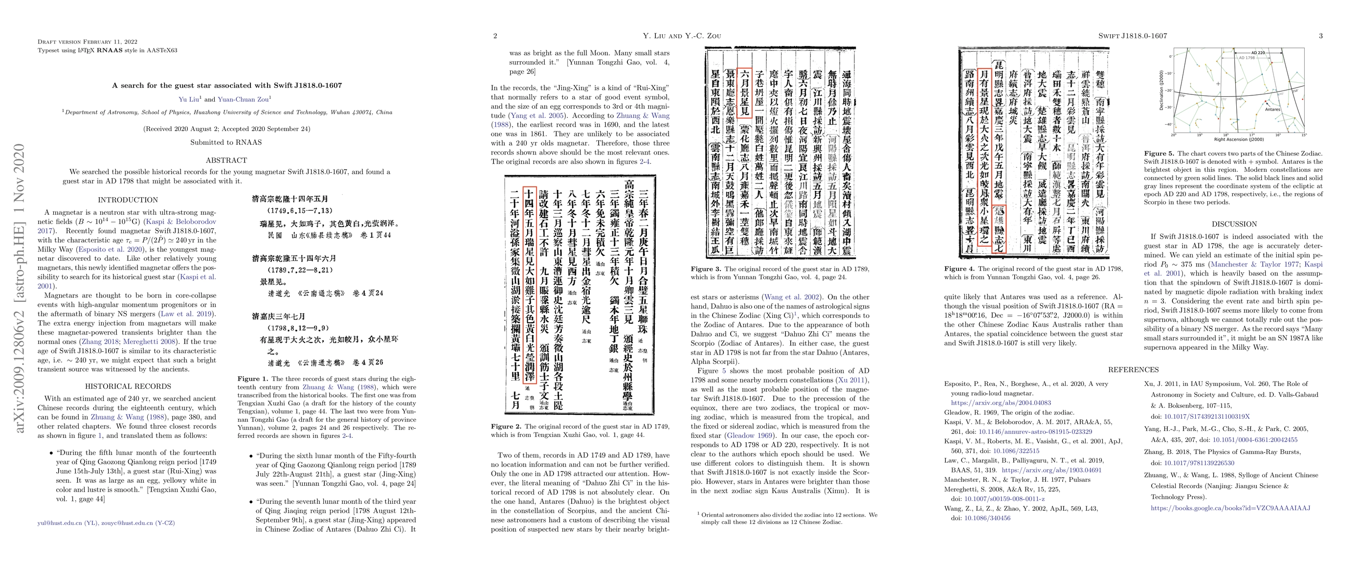 We searched the possible historical records for the young magnetar Swift J1818.0-1607, and found a guest star in AD 1798 that might be associated with it.