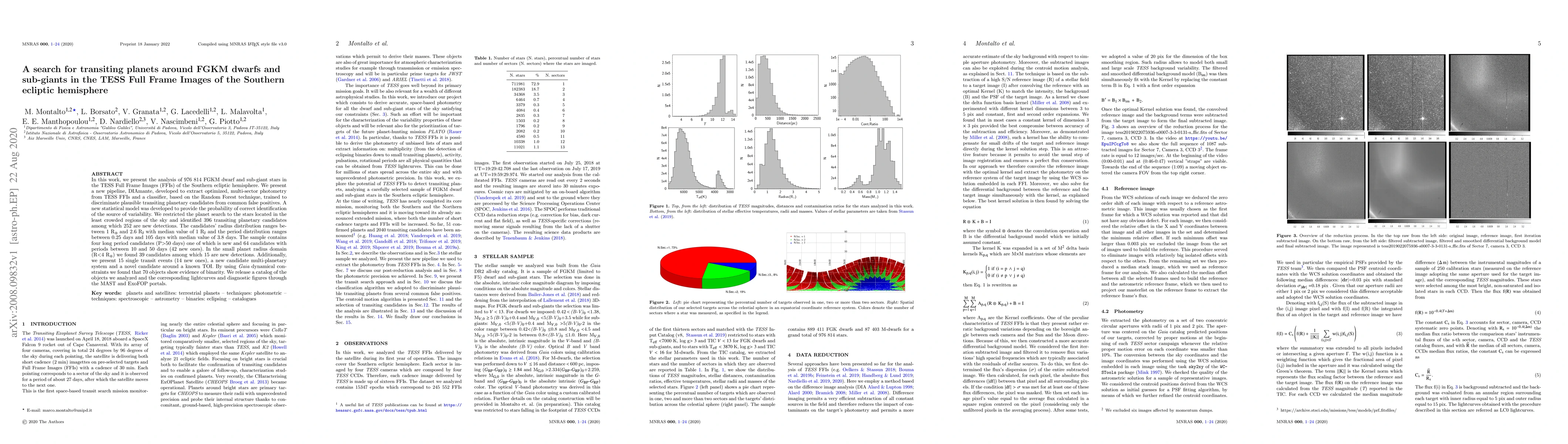 In this work, we present the analysis of 976 814 FGKM dwarf and sub-giant stars in the TESS Full Frame Images (FFIs) of the Southern ecliptic hemisphere. We present a new pipeline, DIAmante, developed to extract optimized, multi-sector photometry from TESS FFIs and a classifier, based on the Random Forest technique, trained to discriminate plausible transiting planetary candidates from common false positives. A new statistical model was developed to provide the probability of correct identification of the source of variability. We restricted the planet search to the stars located in the least crowded regions of the sky and identified 396 transiting planetary candidates among which 252 are new detections. The candidates' radius distribution ranges between 1 R$\rm_{\oplus}$ and 2.6 R$\rm_J$ with median value of 1 R$\rm_J$ and the period distribution ranges between 0.25 days and 105 days with median value of 3.8 days. The sample contains four long period candidates (P>50 days) one of which is new and 64 candidates with periods between 10 and 50 days (42 new ones). In the small planet radius domain (R<4 R$\rm_{\oplus}$) we found 39 candidates among which 15 are new detections. Additionally, we present 15 single transit events (14 new ones), a new candidate multi-planetary system and a novel candidate around a known TOI. By using {\it Gaia} dynamical constraints we found that 70 objects show evidence of binarity. We release a catalog of the objects we analyzed and the corresponding lightcurves and diagnostic figures through the MAST and ExoFOP portals.