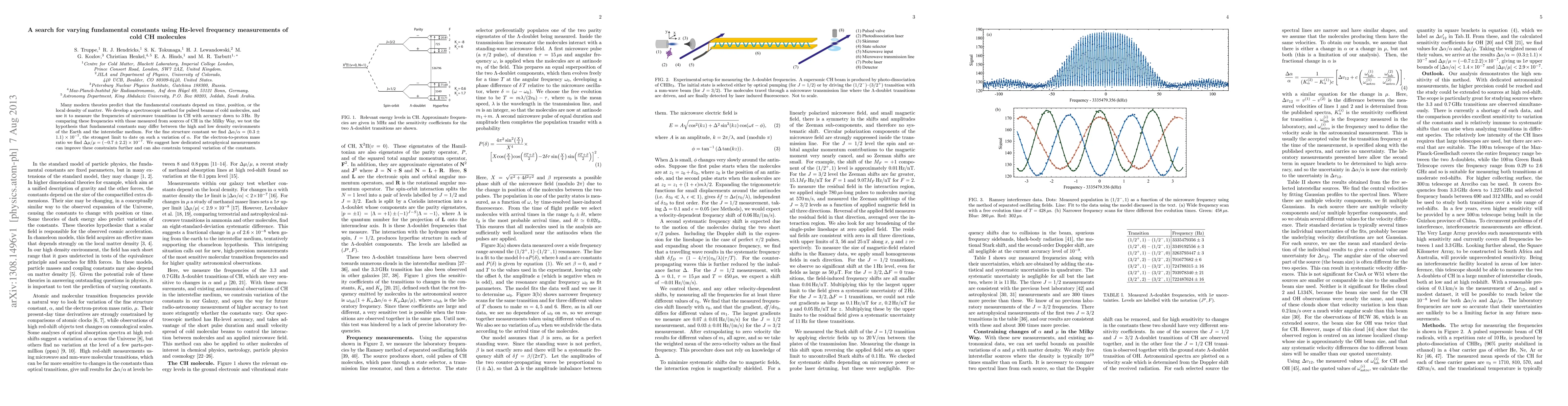 The research paper presents a method using cold CH molecules to measure fundamental constants' frequencies at Hz-level accuracy. Comparing these with Milky Way CH sources, it finds the tightest constraint yet on the fine-structure constant's variation, (Deltaalpha/alpha = (0.3 +/- 1.1)*10^{-7}), and a limit on the electron-to-proton mass ratio variation, (Deltamu/mu = (-0.7 +/- 2.2) * 10^{-7}).