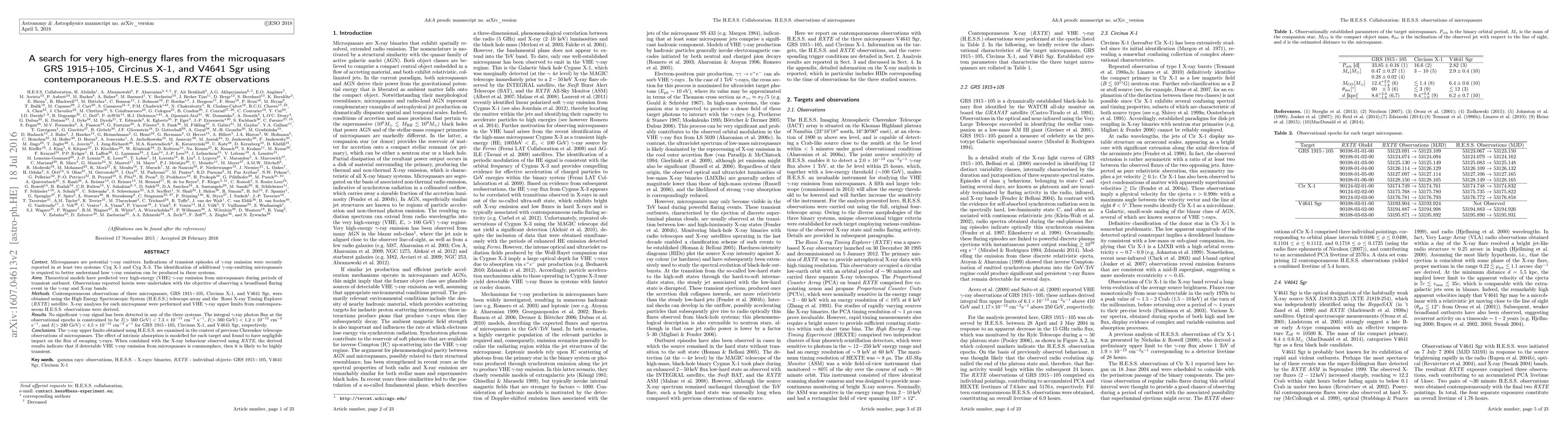 This study uses H.E.S.S. and RXTE to search for very high-energy gamma-ray flares from microquasars GRS 1915+105, Circinus X-1, and V4641 Sgr, finding no significant gamma-ray signals and establishing upper limits on their gamma-ray flux.