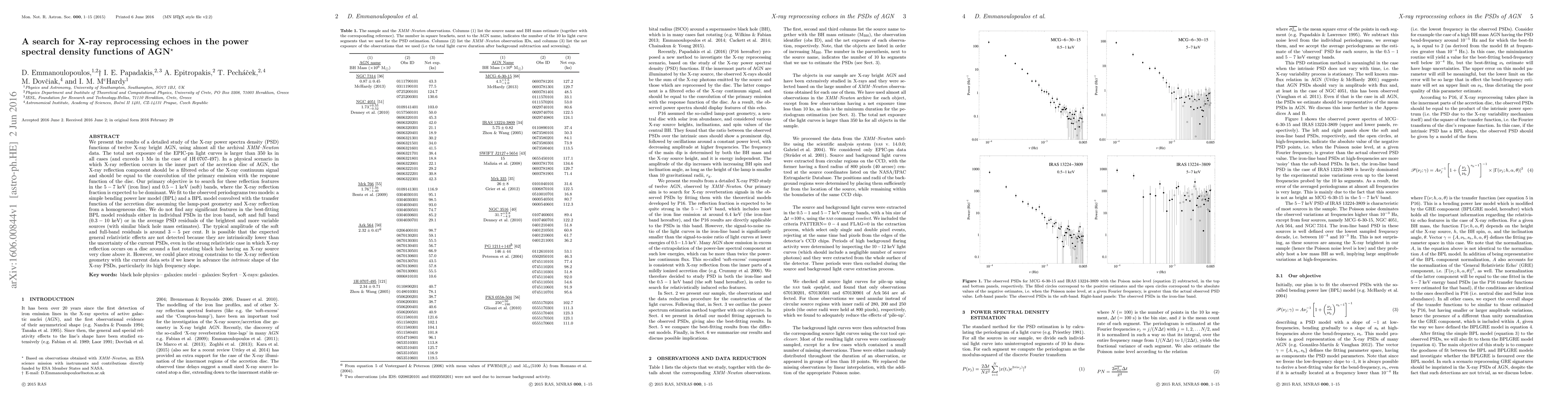 This study investigates the X-ray power spectral density functions of twelve active galactic nuclei (AGN) using XMM-Newton data, aiming to detect X-ray reprocessing echoes. Despite fitting models to the data, no significant reflection features were found, suggesting that the expected relativistic effects may be below current detection limits.