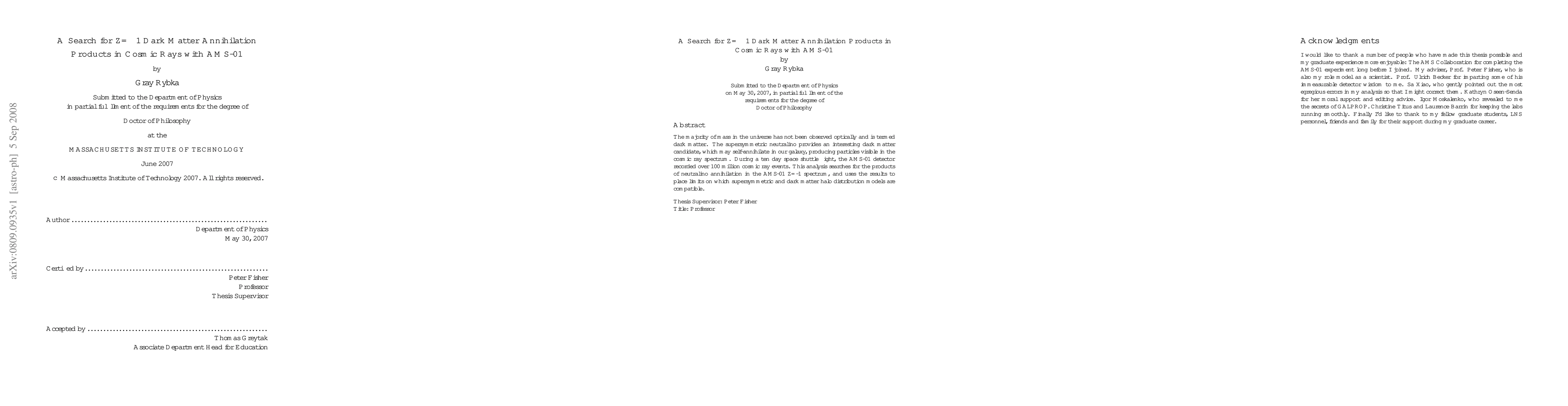 The majority of mass in the universe has not been observed optically and is termed dark matter. The supersymmetric neutralino provides an interesting dark matter candidate, which may self-annihilate in our galaxy, producing particles visible in the cosmic ray spectrum. During a ten day space shuttle flight, the AMS-01 detector recorded over 100 million cosmic ray events. This analysis searches for the products of neutralino annihilation in the AMS-01 Z=-1 spectrum, and uses the results to place limits on which supersymmetric and dark matter halo distribution models are compatible.