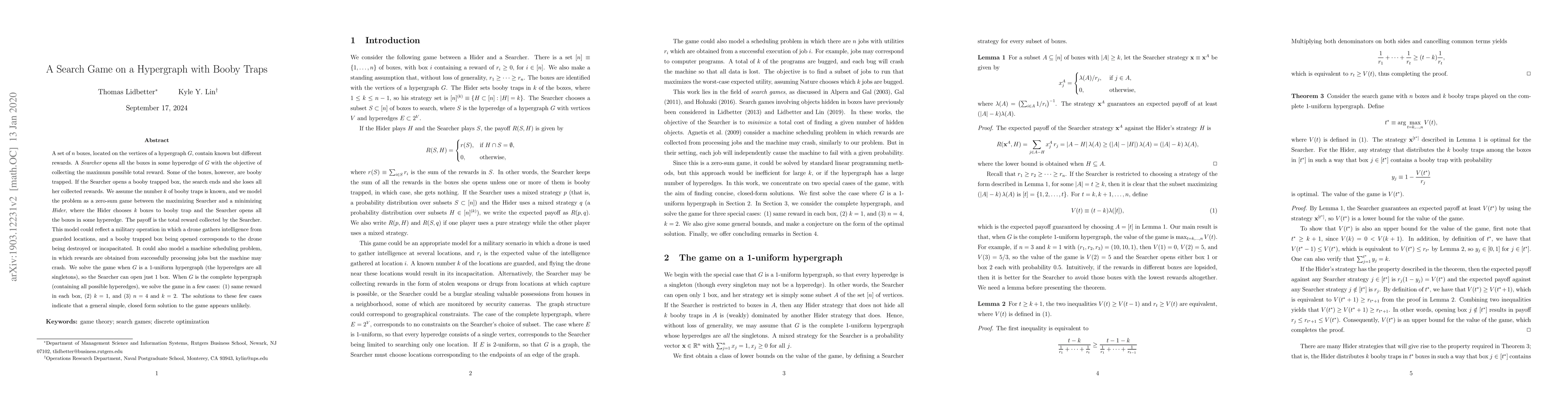 Researchers study a game where a seeker collects rewards from boxes on a hypergraph while avoiding booby traps, solving specific cases but finding a general simple solution unlikely.