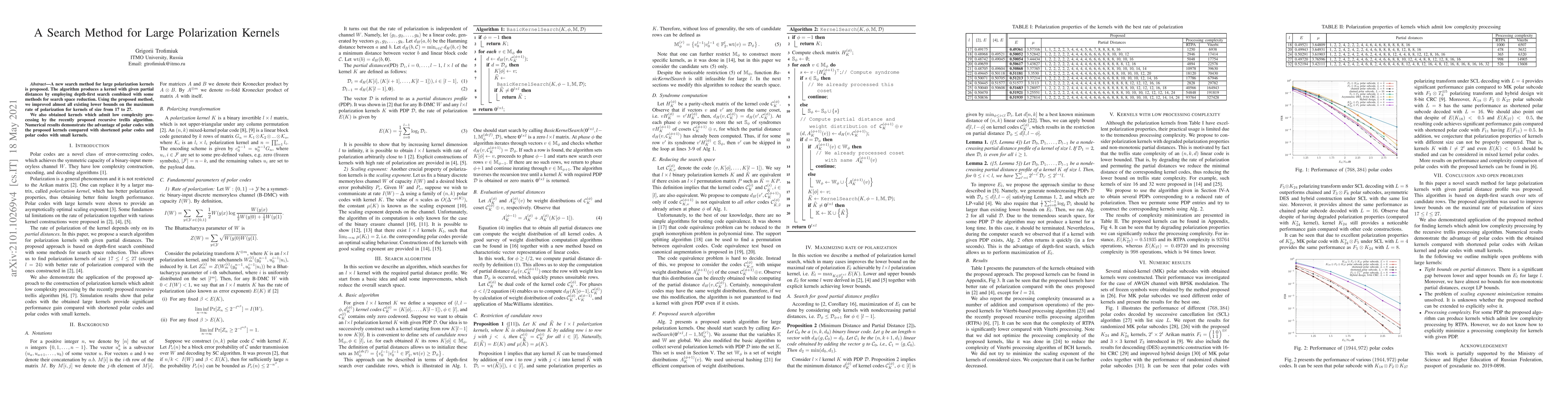 This paper introduces a novel search method for large polarization kernels that combines depth-first search with space-reduction techniques, improving existing lower bounds on maximum polarization rates for kernels from size 17 to 27. The proposed kernels also support efficient processing via a recursive trellis algorithm, showing superior performance over shortened polar codes.