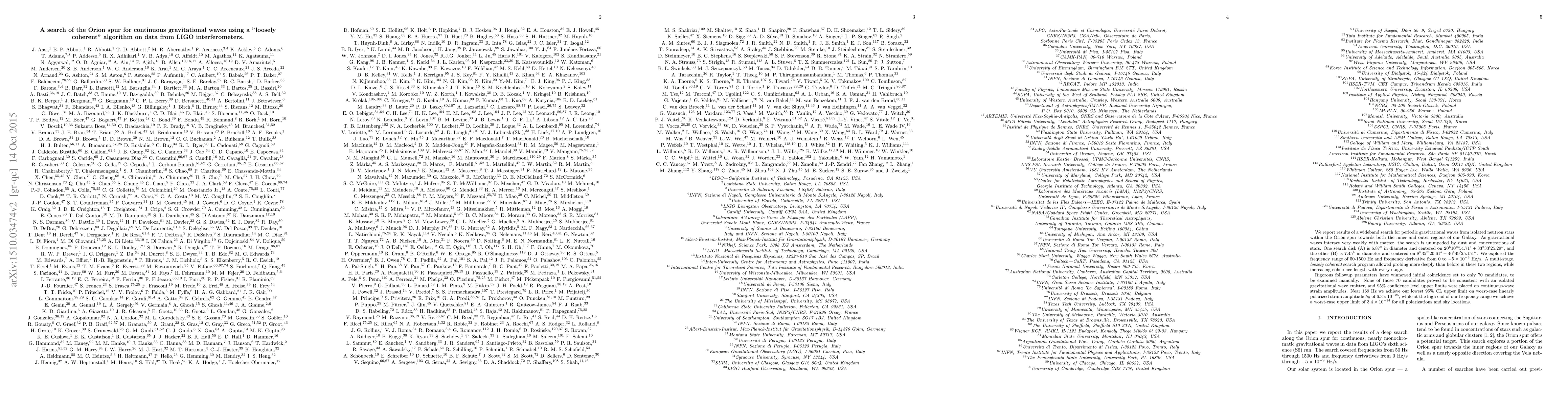 We report results of a wideband search for periodic gravitational waves from isolated neutron stars within the Orion spur towards both the inner and outer regions of our Galaxy. As gravitational waves interact very weakly with matter, the search is unimpeded by dust and concentrations of stars. One search disk (A) is $6.87^\circ$ in diameter and centered on $20^\textrm{h}10^\textrm{m}54.71^\textrm{s}+33^\circ33'25.29"$, and the other (B) is $7.45^\circ$ in diameter and centered on $8^\textrm{h}35^\textrm{m}20.61^\textrm{s}-46^\circ49'25.151"$. We explored the frequency range of 50-1500 Hz and frequency derivative from $0$ to $-5\times 10^{-9}$ Hz/s. A multi-stage, loosely coherent search program allowed probing more deeply than before in these two regions, while increasing coherence length with every stage. Rigorous followup parameters have winnowed initial coincidence set to only 70 candidates, to be examined manually. None of those 70 candidates proved to be consistent with an isolated gravitational wave emitter, and 95% confidence level upper limits were placed on continuous-wave strain amplitudes. Near $169$ Hz we achieve our lowest 95% CL upper limit on worst-case linearly polarized strain amplitude $h_0$ of $6.3\times 10^{-25}$, while at the high end of our frequency range we achieve a worst-case upper limit of $3.4\times 10^{-24}$ for all polarizations and sky locations.