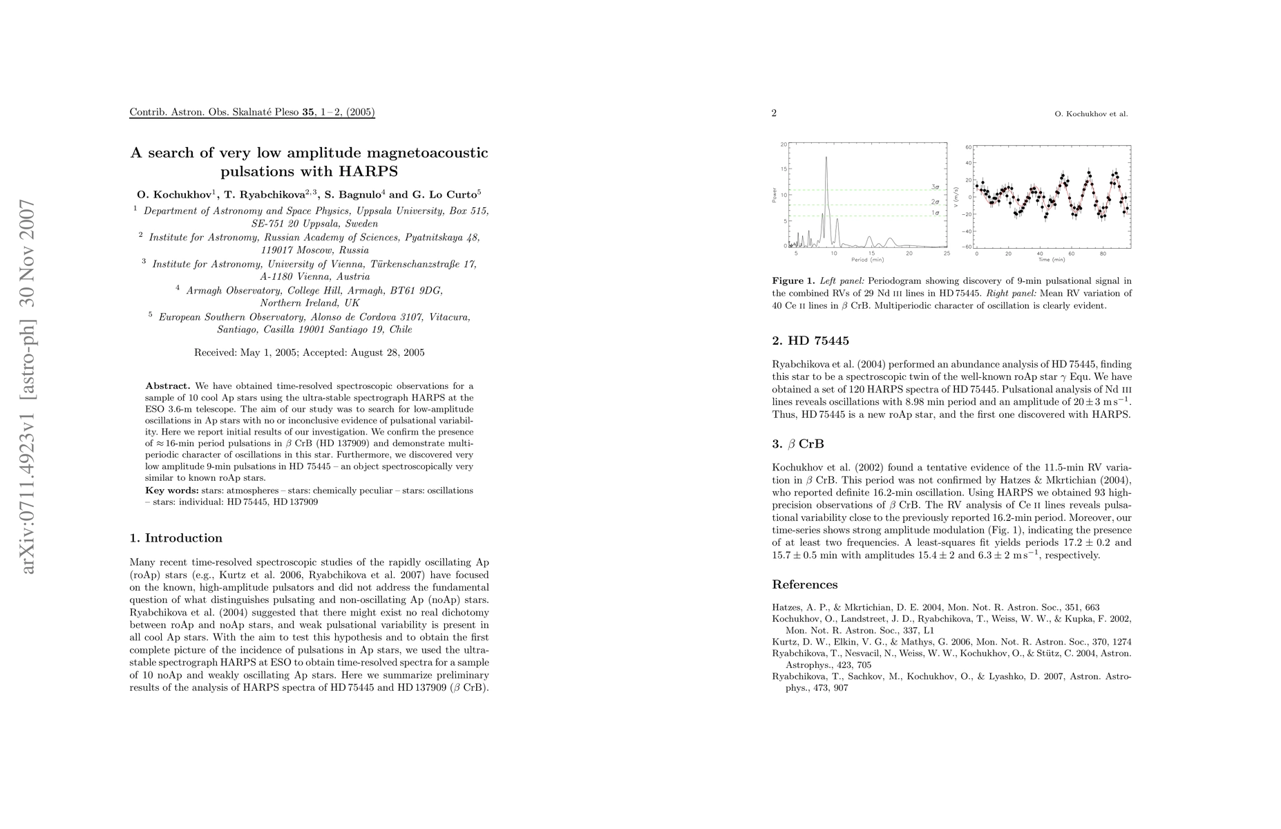 We have obtained time-resolved spectroscopic observations for a sample of 10 cool Ap stars using the ultra-stable spectrograph HARPS at the ESO 3.6-m telescope. The aim of our study was to search for low-amplitude oscillations in Ap stars with no or inconclusive evidence of pulsational variability. Here we report initial results of our investigation. We confirm the presence of ~16-min period pulsations in beta CrB (HD 137909) and demonstrate multiperiodic character of oscillations in this star. Furthermore, we discovered very low amplitude 9-min pulsations in HD 75445 - an object spectroscopically very similar to known roAp stars.