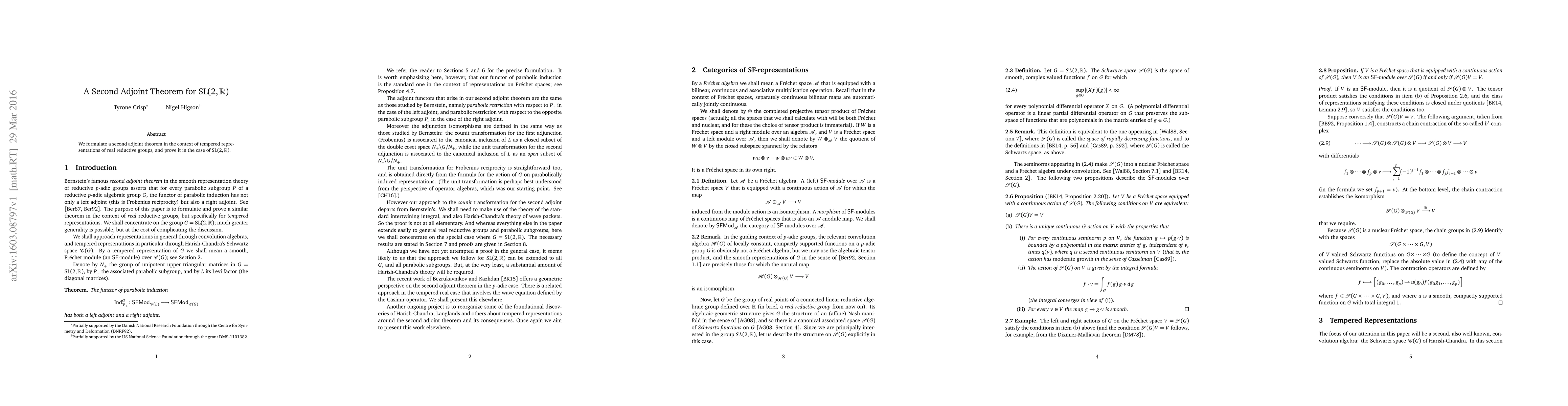 This paper formulates and proves a second adjoint theorem for tempered representations within the framework of real reductive groups, specifically focusing on the special linear group SL(2,R). The theorem provides significant insights into the structure and behavior of these representations.