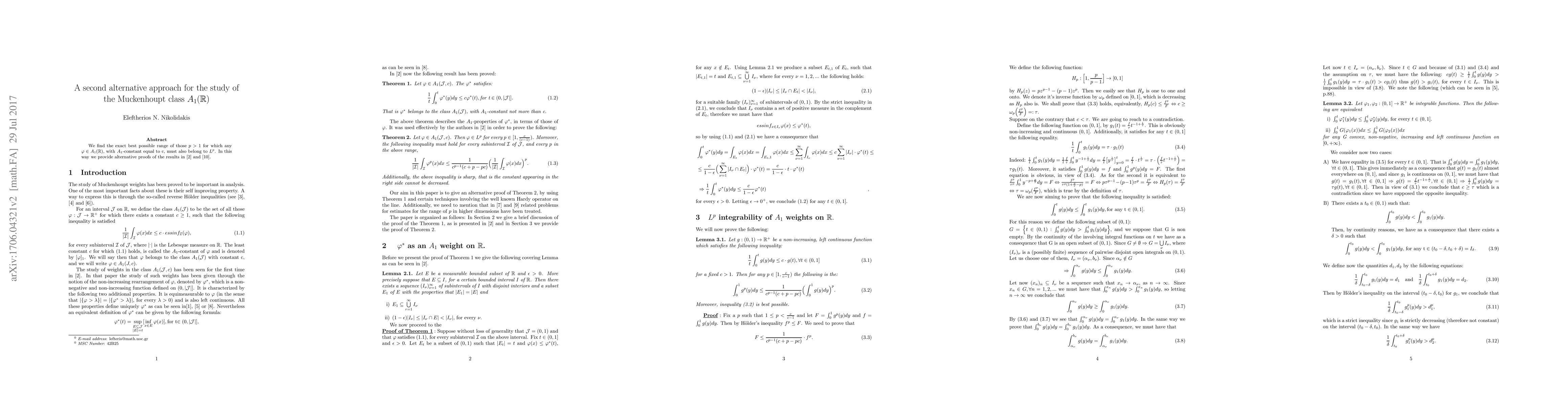 We find the exact best possible range of those $p > 1$ for which any function which belongs to $A_1(\mathbb{R})$, with $A_1$-constant equal to $c$, must also belong to $L^p$. In this way we provide alternative proofs of the results in [2] and [10].