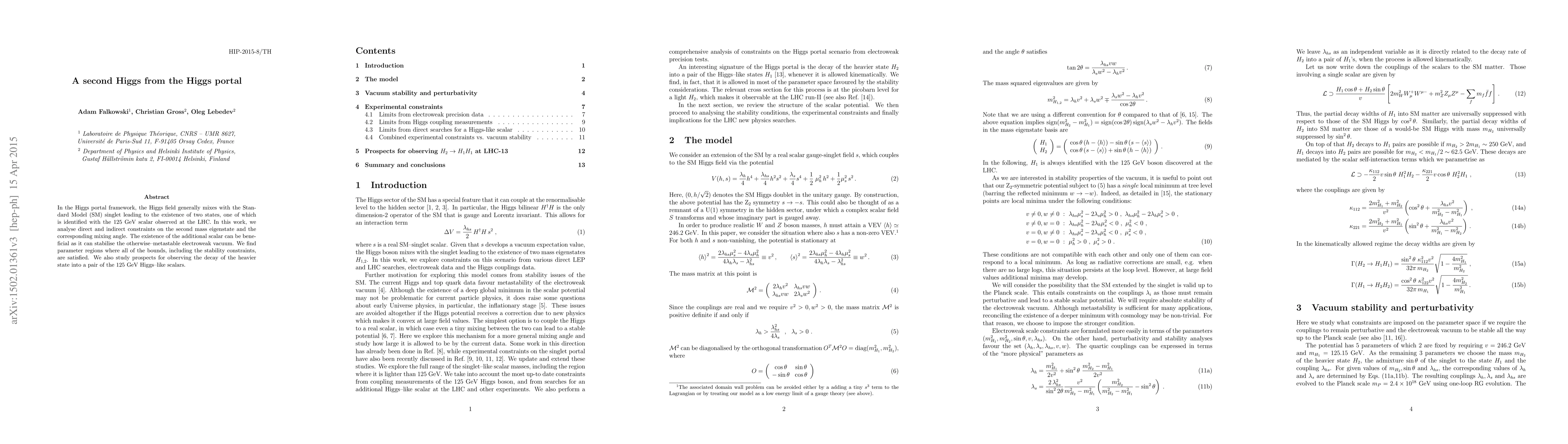 This paper explores the implications of a second Higgs state in the Higgs portal framework, analyzing constraints on its mass and mixing angle. It finds parameter regions where the additional scalar stabilizes the electroweak vacuum and discusses potential observational signatures, including its decay into pairs of the 125 GeV Higgs-like scalars.