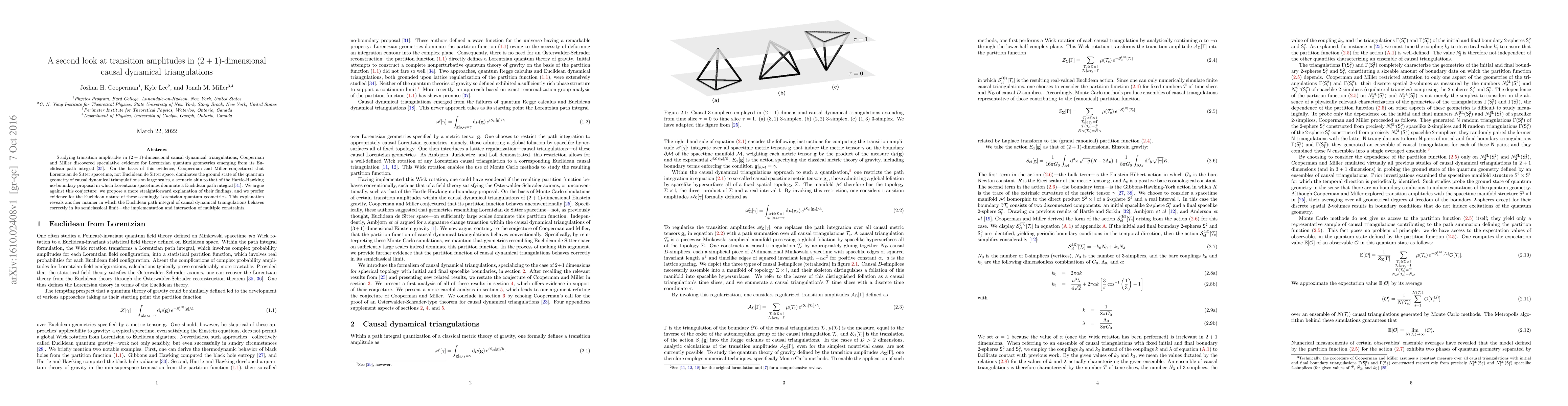 Studying transition amplitudes in (2+1)-dimensional causal dynamical triangulations, Cooperman and Miller discovered speculative evidence for Lorentzian quantum geometries emerging from its Euclidean path integral. On the basis of this evidence, Cooperman and Miller conjectured that Lorentzian de Sitter spacetime, not Euclidean de Sitter space, dominates the ground state of the quantum geometry of causal dynamical triangulations on large scales, a scenario akin to that of the Hartle-Hawking no-boundary proposal in which Lorentzian spacetimes dominate a Euclidean path integral. We argue against this conjecture: we propose a more straightforward explanation of their findings, and we proffer evidence for the Euclidean nature of these seemingly Lorentzian quantum geometries. This explanation reveals another manner in which the Euclidean path integral of causal dynamical triangulations behaves correctly in its semiclassical limit--the implementation and interaction of multiple constraints.