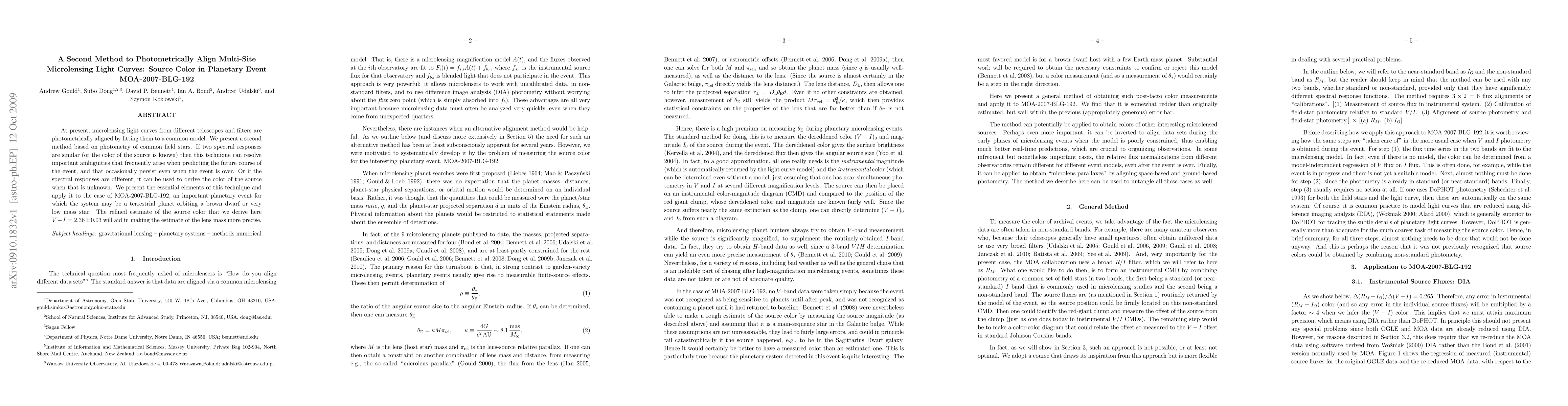 This paper introduces a new method for aligning microlensing light curves using common field stars' photometry, resolving ambiguities in multi-site observations. It applies this technique to the planetary event MOA-2007-BLG-192, deriving a refined source color estimate of V-I=2.36 ± 0.03, which enhances the precision of lens mass estimation.