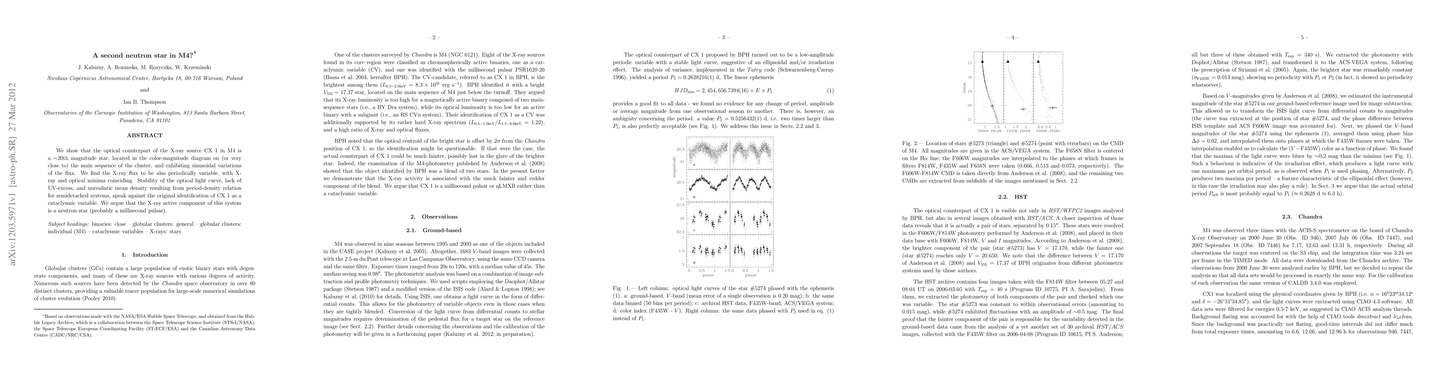 We show that the optical counterpart of the X-ray source CX 1 in M4 is a 20th magnitude star, located in the color-magnitude diagram on (or very close to) the main sequence of the cluster, and exhibiting sinusoidal variations of the flux. We find the X-ray flux to be also periodically variable, with X-ray and optical minima coinciding. Stability of the optical light curve, lack of UV-excess, and unrealistic mean density resulting from period-density relation for semidetached systems, speak against the original identification of CX 1 as a cataclysmic variable. We argue that the X-ray active component of this system is a neutron star (probably a millisecond pulsar).