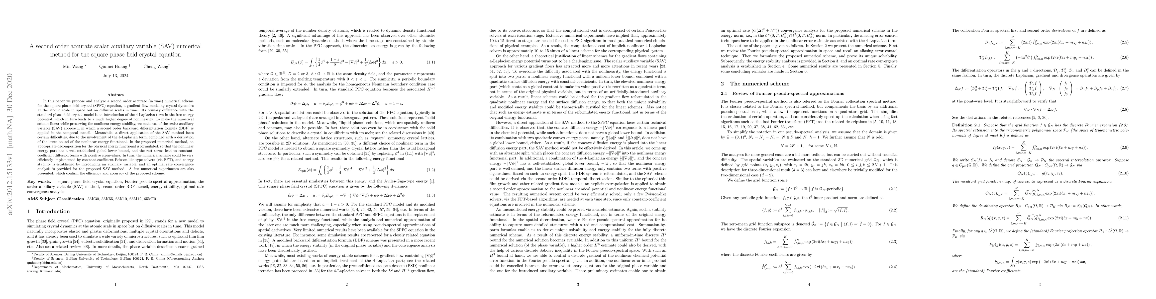 A new numerical method is proposed for solving a complex crystal dynamics equation using a second-order accurate approach with an auxiliary variable, offering improved efficiency and stability.